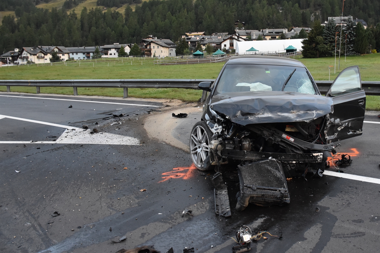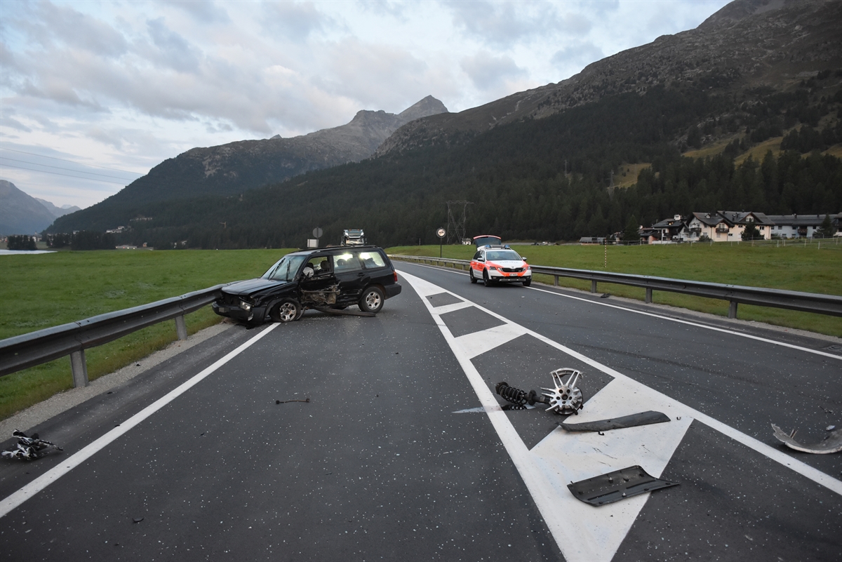 Auf der Engadinerstrasse in Champfèr sind am Dienstagmorgen zwei Personenwagen seitlich-frontal kollidiert. Die beiden Lenker wurden dabei verletzt. An den Fahrzeugen entstand Totalschaden.
