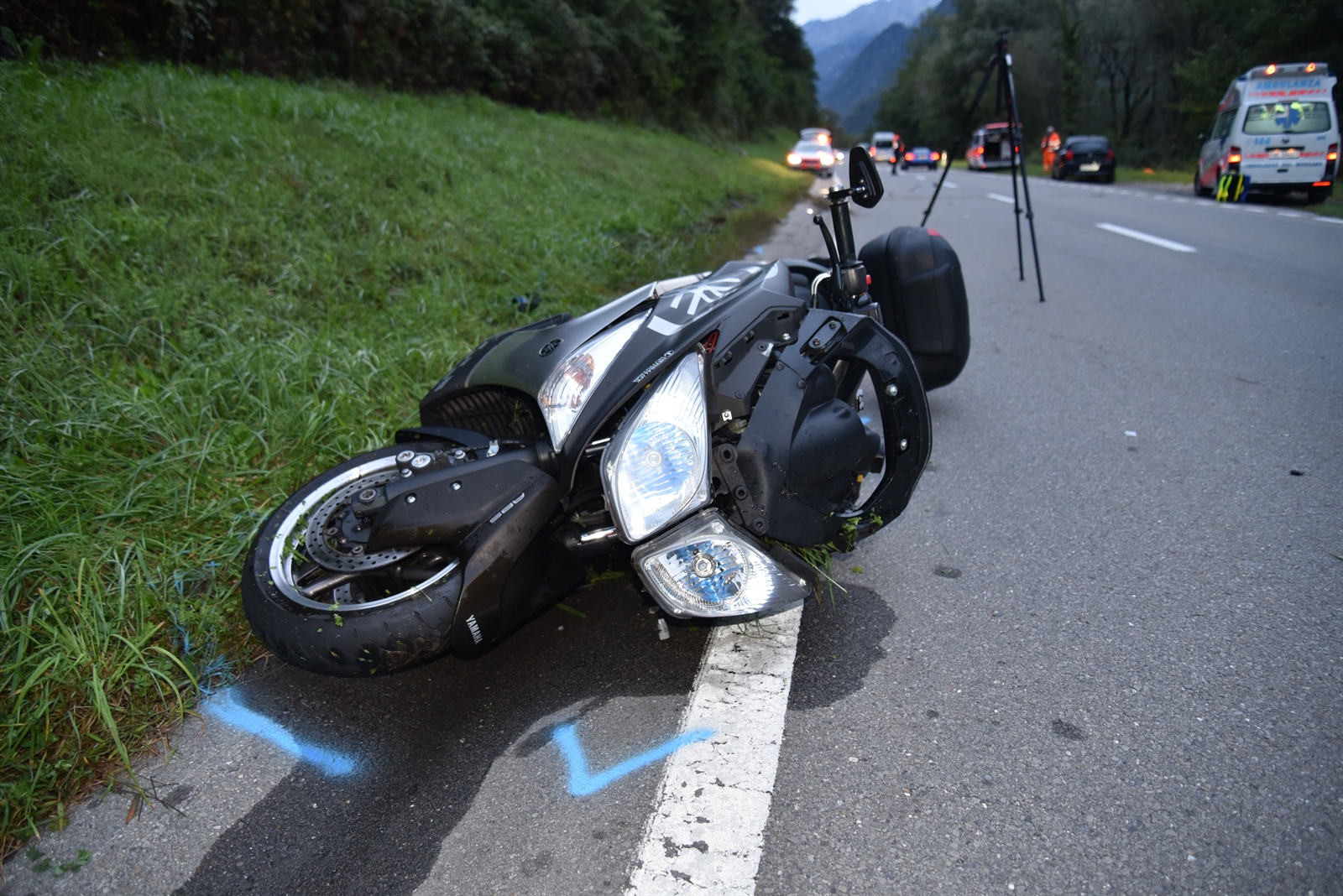 Der 55-jährige fuhr am Mittwoch um 06.10 Uhr auf der Italienischen Strasse H13 mit seinem Roller von Leggia in Richtung Grono. Auf einer Geraden bei der Örtlichkeit Pascoletto kollidierte er mit einer Hirschkuh und stürzte. Dabei zog er sich mittelschwere Verletzungen zu. Verkehrsteilnehmer betreuten ihn bis zum Eintreffen der Ambulanza del Moesano, welche die medizinischen Massnahmen übernahm und den Mann ins Spital nach Bellinzona transportierte. Die Hirschkuh wurde bei der Kollision so schwer verletzt, dass ein Wildhüter sie erlegen musste. Am Roller entstand Totalschaden.