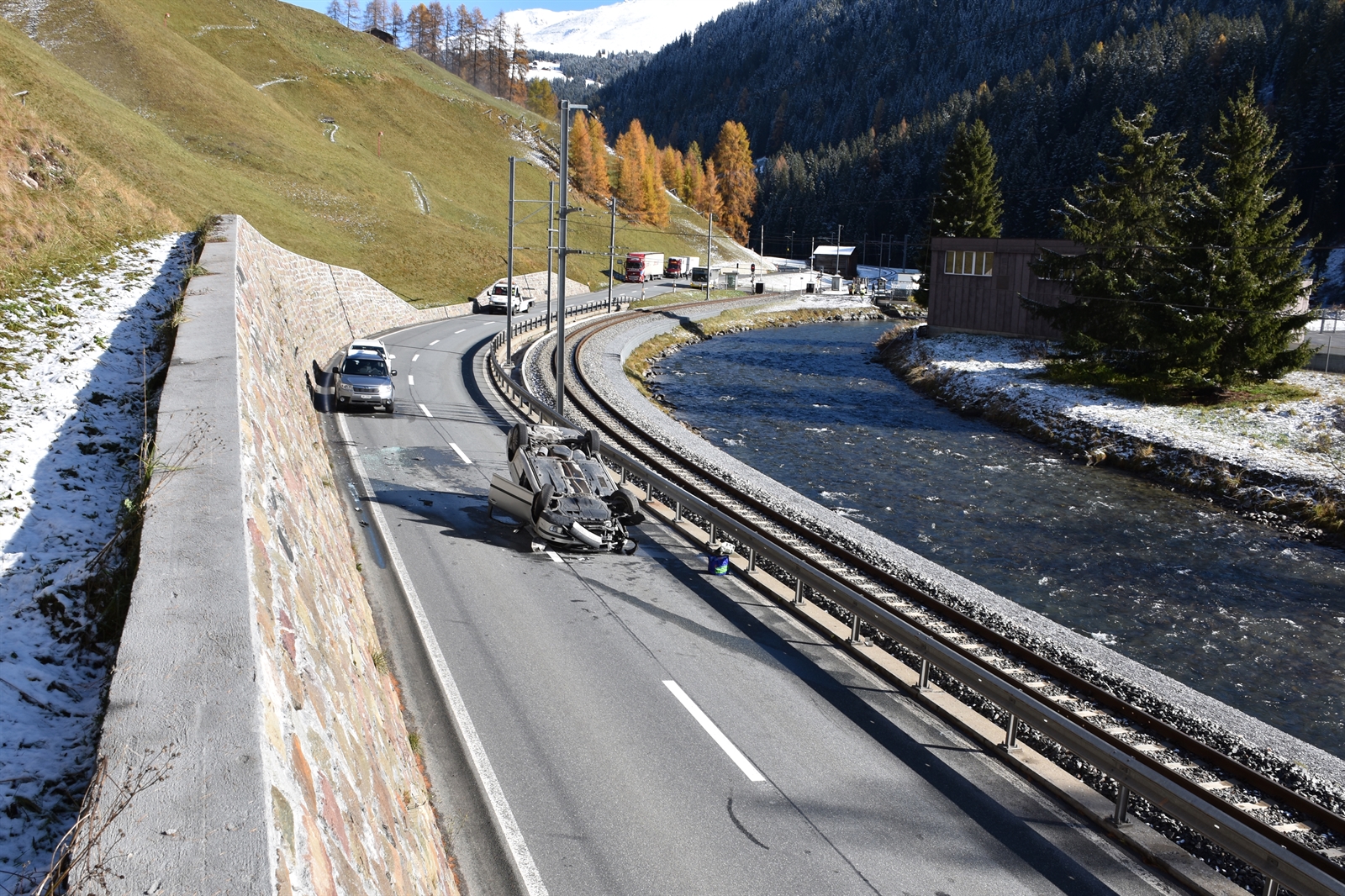 Bei einem Verkehrsunfall in Davos Frauenkirch hat sich am Montagvormittag ein Auto auf das Dach überschlagen. Beim unverletzten Lenker wurde eine Blutprobe angeordnet.