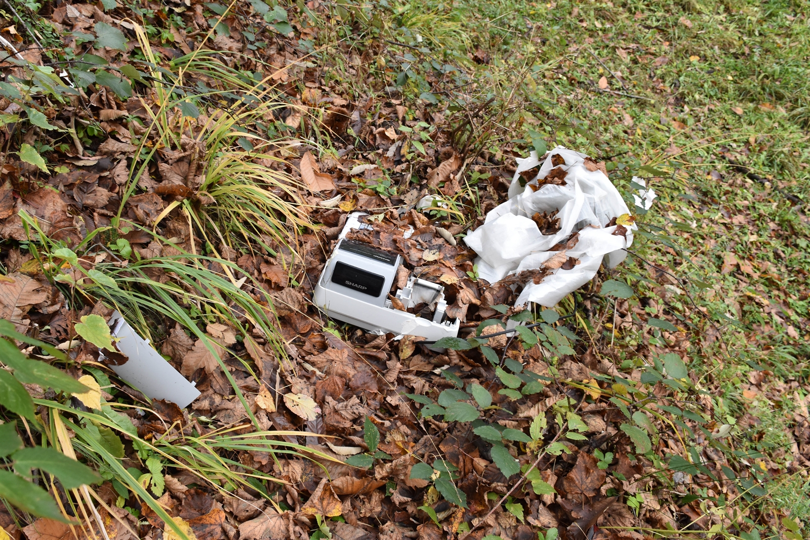 Aufgebrochene Registrierkasse, in einem Waldstück in Castasegna aufgefunden.