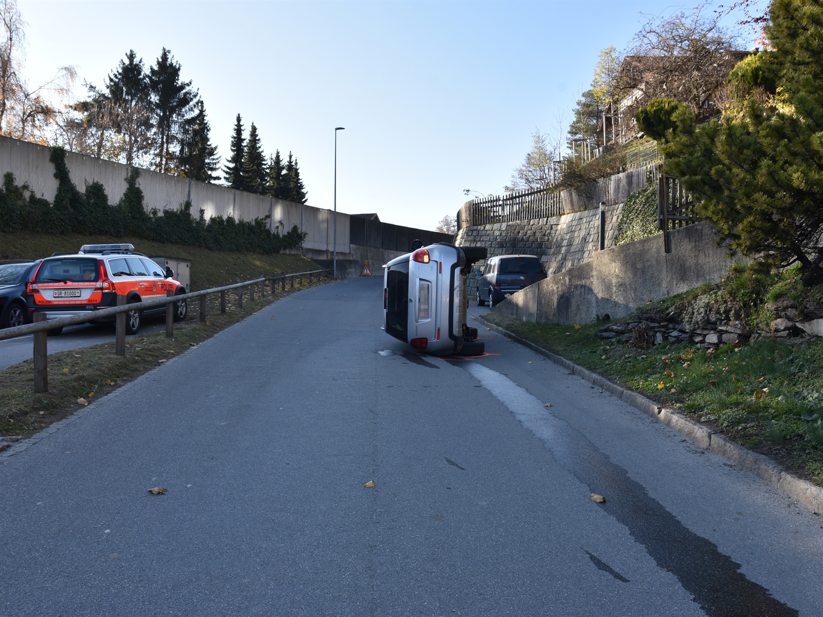 Die 46-Jährige beabsichtige am Montag kurz vor 13.30 Uhr über die Reichenauerstrasse bergwärts zu fahren. Um auf der schmalen Strasse dem entgegenkommenden Postauto das Kreuzen zu ermöglichen, fuhr die Frau ein Stück retour. Dabei geriet das Fahrzeug rechtsseitig auf eine ansteigende Stützmauer und kippte auf die linke Fahrzeugseite. Aufgrund des positiven Atemlufttests wurde die Lenkerin einer Blutprobe zugeführt. Das Fahrzeug musste total beschädigt aufgeladen werden. Während den Bergungsarbeiten wurde die Nebenstrasse kurzzeitig durch die Kantonspolizei Graubünden gesperrt.