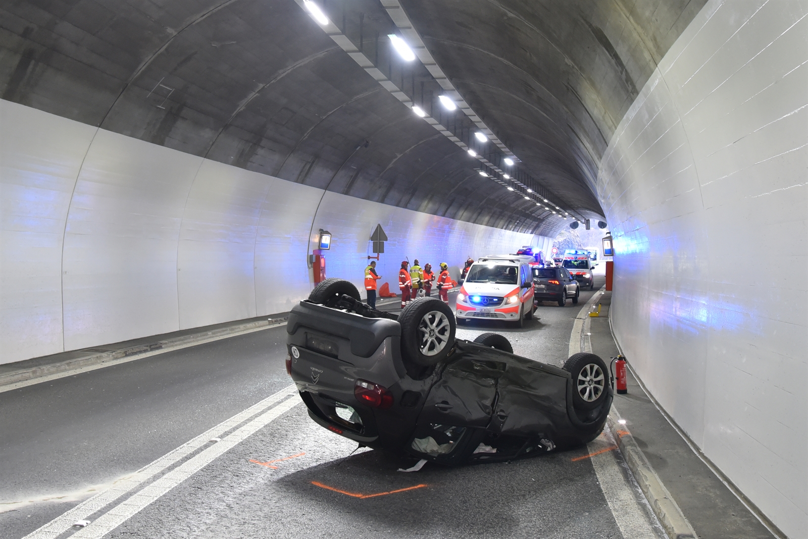 In Mesocco sind am Samstagvormittag auf der Autostrasse A13 im Tunnel Gorda zwei Autos miteinander kollidiert. Eines davon überschlug sich.