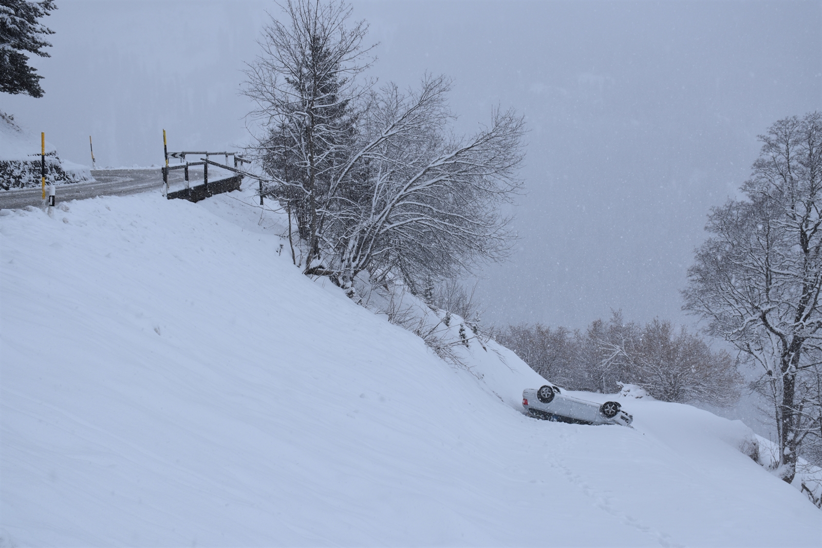 Am Freitagmorgen hat sich auf der Schanfiggerstrasse in Peist ein Selbstunfall mit einem Personenwagen ereignet. Das Fahrzeug überschlug sich über einen Abhang hinunter. Der Lenker wurde leicht verletzt.