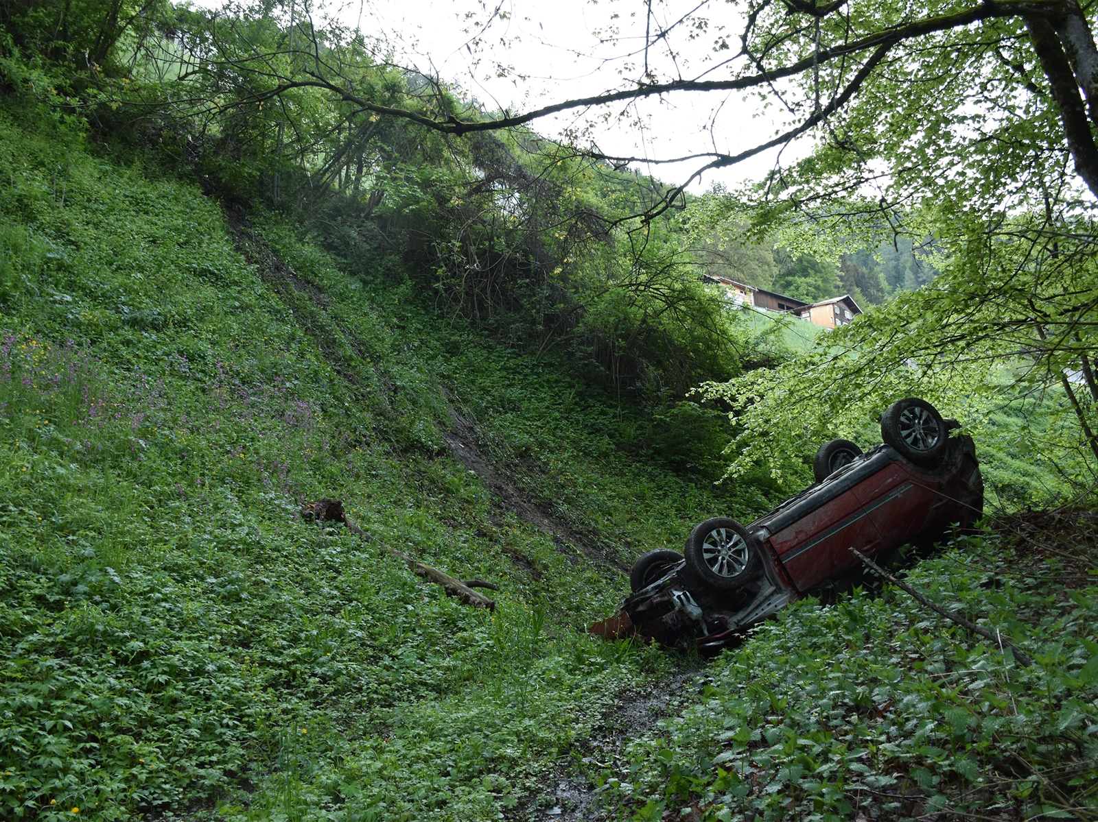 Am frühen Donnerstagmorgen hat sich in Schiers ein Auto einen Abhang hinunter überschlagen. Der Fahrzeuglenker verletzte sich.