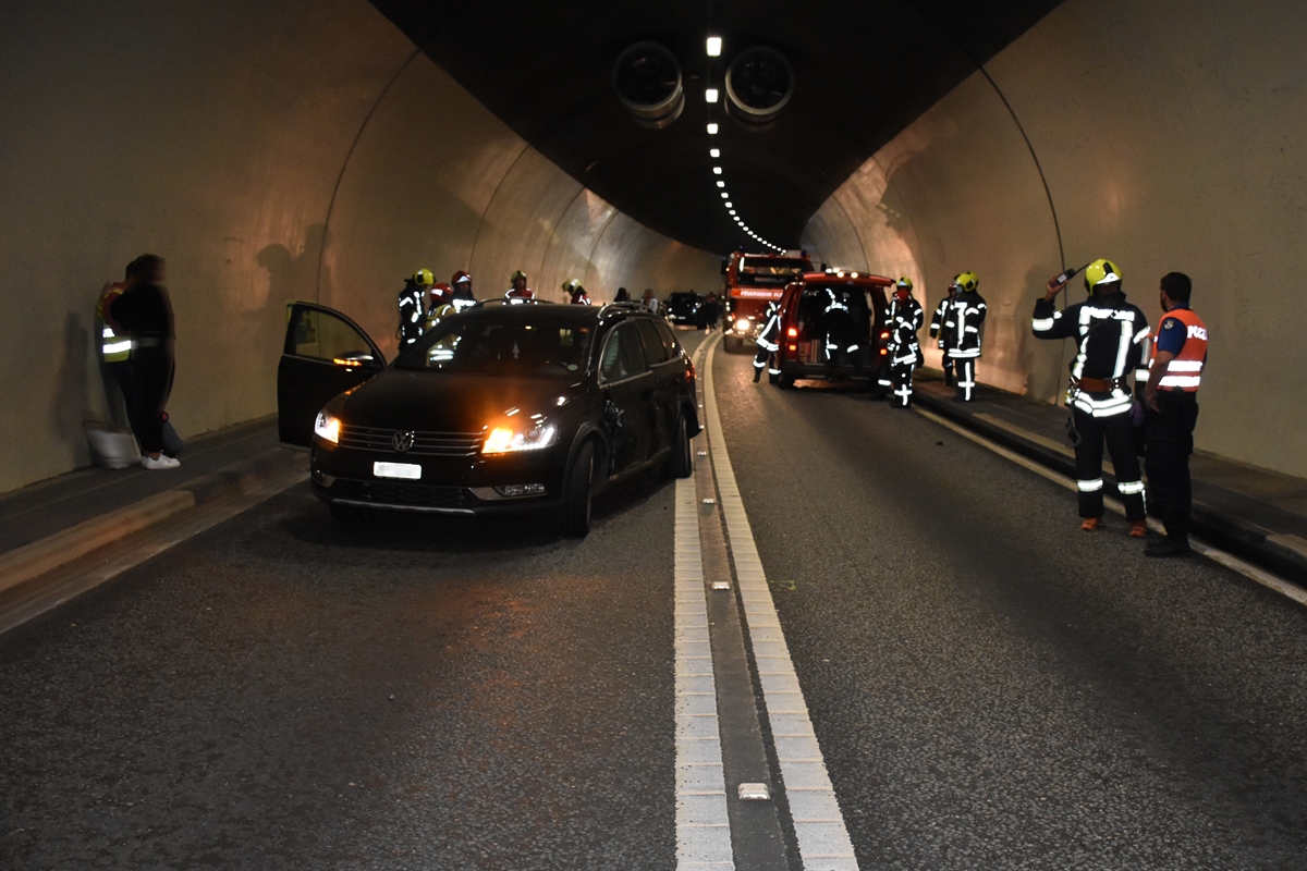 Ein 74-jähriger Personenwagenlenker fuhr um 13.40 Uhr gemeinsam mit einer Mitfahrerin im Umfahrungstunnel Trin auf der Oberalpstrasse H19 in Richtung Flims. Aus der Gegenrichtung nahte eine 54-jährige Autofahrerin, begleitet von ihrer 21-jährigen Tochter. Der in Richtung Flims fahrende Personenwagen geriet in einer langgezogenen Rechtskurve nach links über die doppelte Sicherheitslinie. Dabei streiften die beiden Autos heftig miteinander und ein hinter der 54-Jährigen fahrendes Auto wurde durch Kollisionsteile beschädigt. Die 54-Jährige und ihrer Tochter verletzten sich dabei leicht. Die Feuerwehren Flims und Trin standen zum Brandschutz und weitere Arbeiten auf der Unfallstelle im Einsatz. Ein Ambulanzteam der Rettung Chur führte die medizinische Versorgung durch. Die beiden total beschädigten Fahrzeuge wurden aufgeladen und abtransportiert. Während der Arbeiten auf der Unfallstelle wurde der Verkehr bis 16 Uhr durch Trin umgeleitet. Die Kantonspolizei Graubünden ermittelt die genauen Umstände, die zu diesem Verkehrsunfall führten.