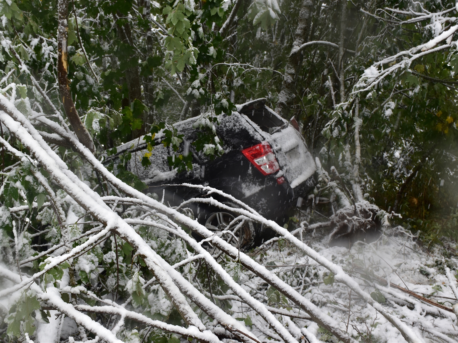 Durch die Bäume aufgehaltenes Auto