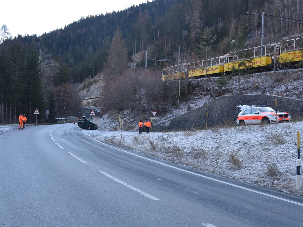 Die 59-Jährige fuhr kurz nach 11.30 Uhr auf der N29 von Thusis in Richtung Tiefencastel. In der Rechtskurve nach dem Solistunnel schleuderte ihr Auto. Es geriet rechts in die Zufahrt zum Bahnhof Solis und überschlug sich an einer ansteigenden Böschung. Unter Mithilfe von Drittpersonen konnte die leicht verletzte Lenkerin das Auto verlassen. Sie wurde zur ambulanten Behandlung ins Spital nach Thusis verbracht. Das total beschädigte Auto wurde aufgeladen und abtransportiert. Die Kantonspolizei Graubünden ermittelt den genauen Unfallhergang.