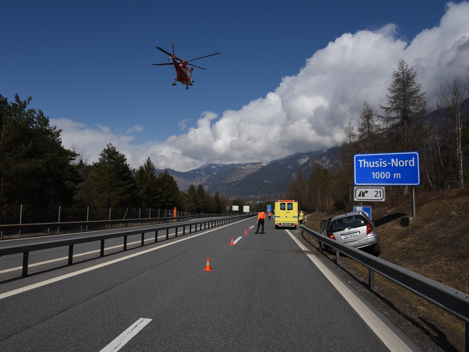 Am Montag kurz vor 13 Uhr fuhr eine 33-jährige Eritreerin in Sils i.D. auf der Nordspur der Autostrasse A13 in Richtung Rothenbrunnen. Nach dem Anschluss Thusis Süd geriet ihr Auto rechts neben die Fahrbahn und kollidierte mit einer Signalisationstafel. Bei der Kollision zog sich ihr sechsjähriger Sohn mittelschwere Verletzungen zu. Die Frau wurde leicht verletzt und ihre dreijährige Tochter blieb unverletzt. Ein Ambulanzteam der Rettung Mittelbünden versorgte gemeinsam mit einer Rega-Crew die beiden Verletzten, bevor sie mit ihren Kindern ins Kantonsspital Graubünden nach Chur geflogen wurde. Die Nordspur der A13 war während den Rettungsarbeiten für rund eine halbe Stunde gesperrt. Die Kantonspolizei Graubünden leitete den Verkehr um und klärt den genauen Unfallhergang ab.