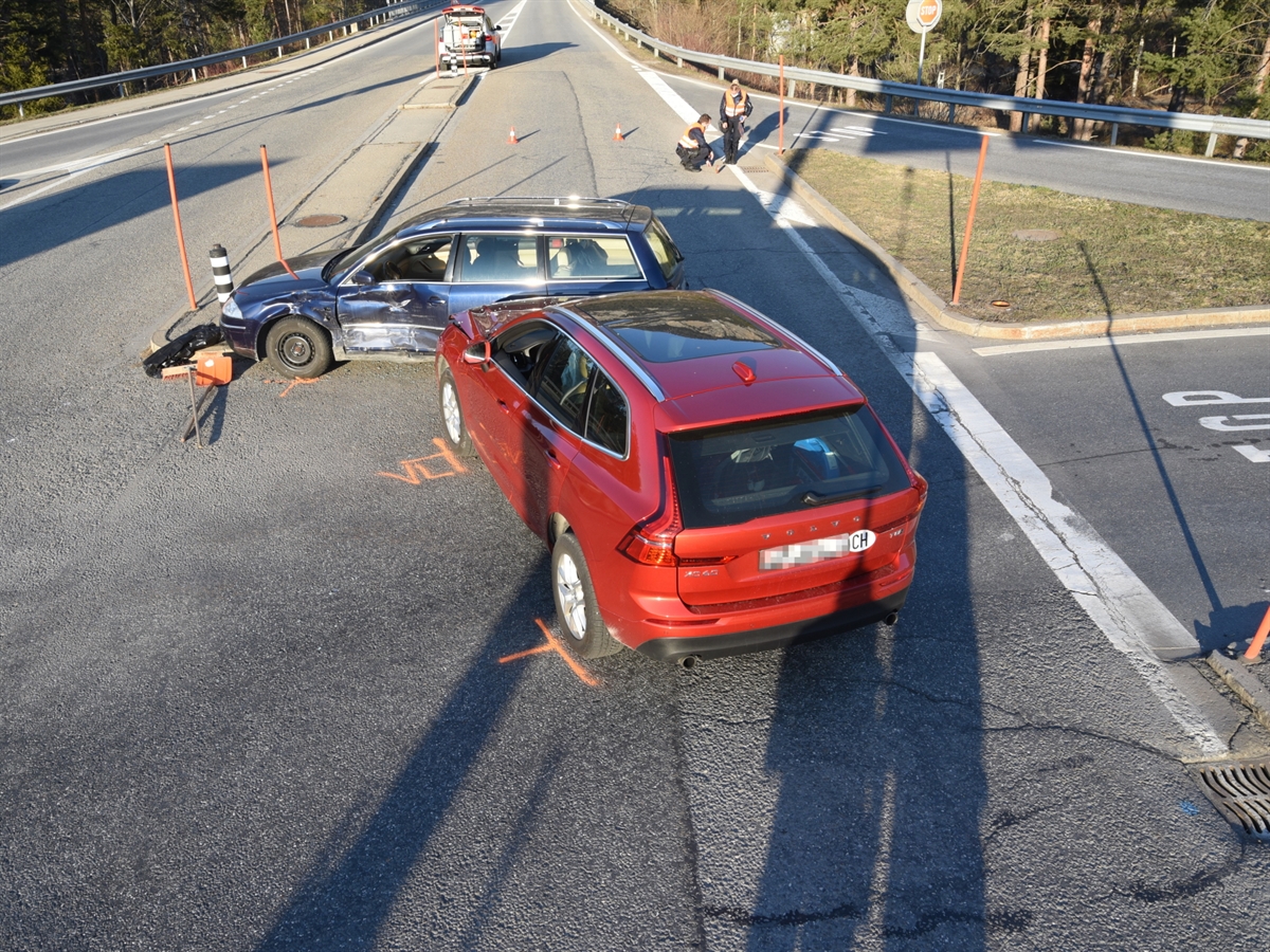 Am Mittwochnachmittag sind auf der Querverbindung beim Anschluss Thusis Nord zwei Personenwagen miteinander kollidiert. Beide Fahrzeuglenker wurden verletzt.