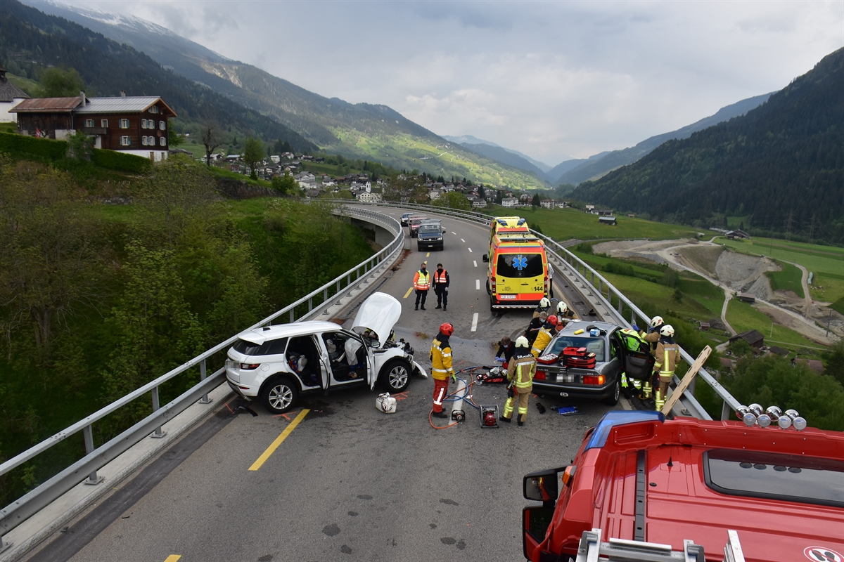 Ein Personenwagenlenker fuhr mit einer Beifahrerin und einem Kleinkind von Rabius auf der H19 in Richtung Disentis. Ausgangs der langgezogenen Rechtskurve auf der Brücke Val Mulinaun geriet der Personenwagen auf die Gegenfahrbahn, wo er mit einem entgegenkommenden Personenwagen, besetzt mit Lenker und Beifahrerin, frontal kollidierte. Die drei Personen, des in Richtung Disentis fahrenden Personenwagens wurden leicht verletzt, vor Ort durch zwei Ambulanz-Teams medizinisch versorgt und anschliessend ins Regionalspital Surselva nach Ilanz gefahren. Lenker und Beifahrerin des in Richtung Ilanz fahrenden Personenwagens wurden im Fahrzeug eingeklemmt und mussten durch die Strassenrettung der Feuerwehr Sursassiala geborgen werden. Anschliessend wurden die beiden Schwerverletzten mit je einem Helikopter der Rega und der Alpine Air Ambulance ins Kantonsspital Graubünden nach Chur überflogen. Am Abend verstarb der Lenker aufgrund der schweren Verletzungen im Spital. Die H19 musste während der Tatbestandsaufnahme für rund zwei Stunden gesperrt werden. Es wurde eine Umfahrung eingerichtet.