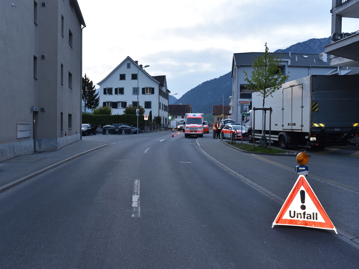 Am frühen Freitagmorgen ist auf der Italienischen Strasse in Domat/Ems ein Fahrrad einem Lastwagen aufgefahren. Der Fahrradfahrer verletzte sich dabei mittelschwer.