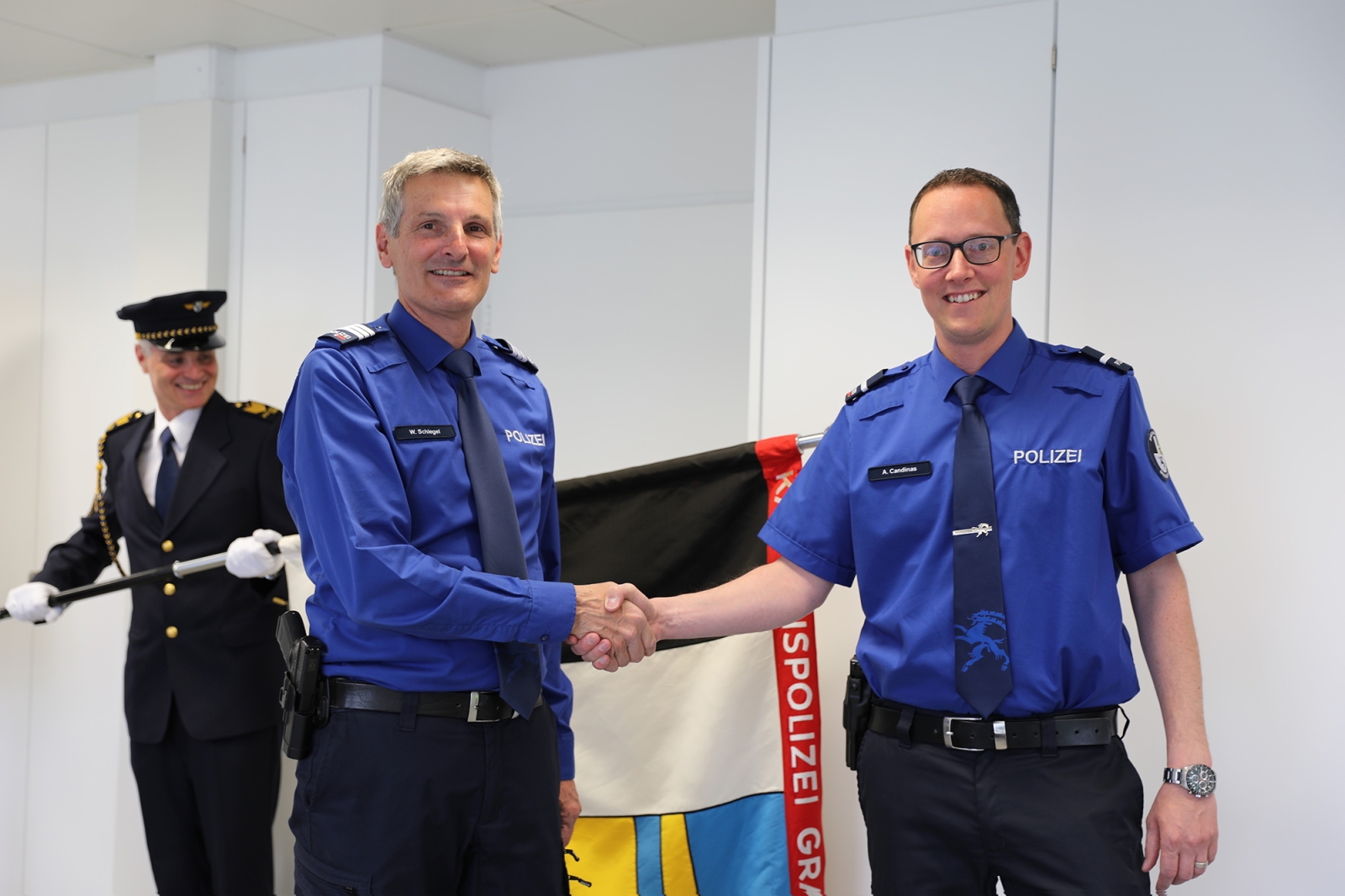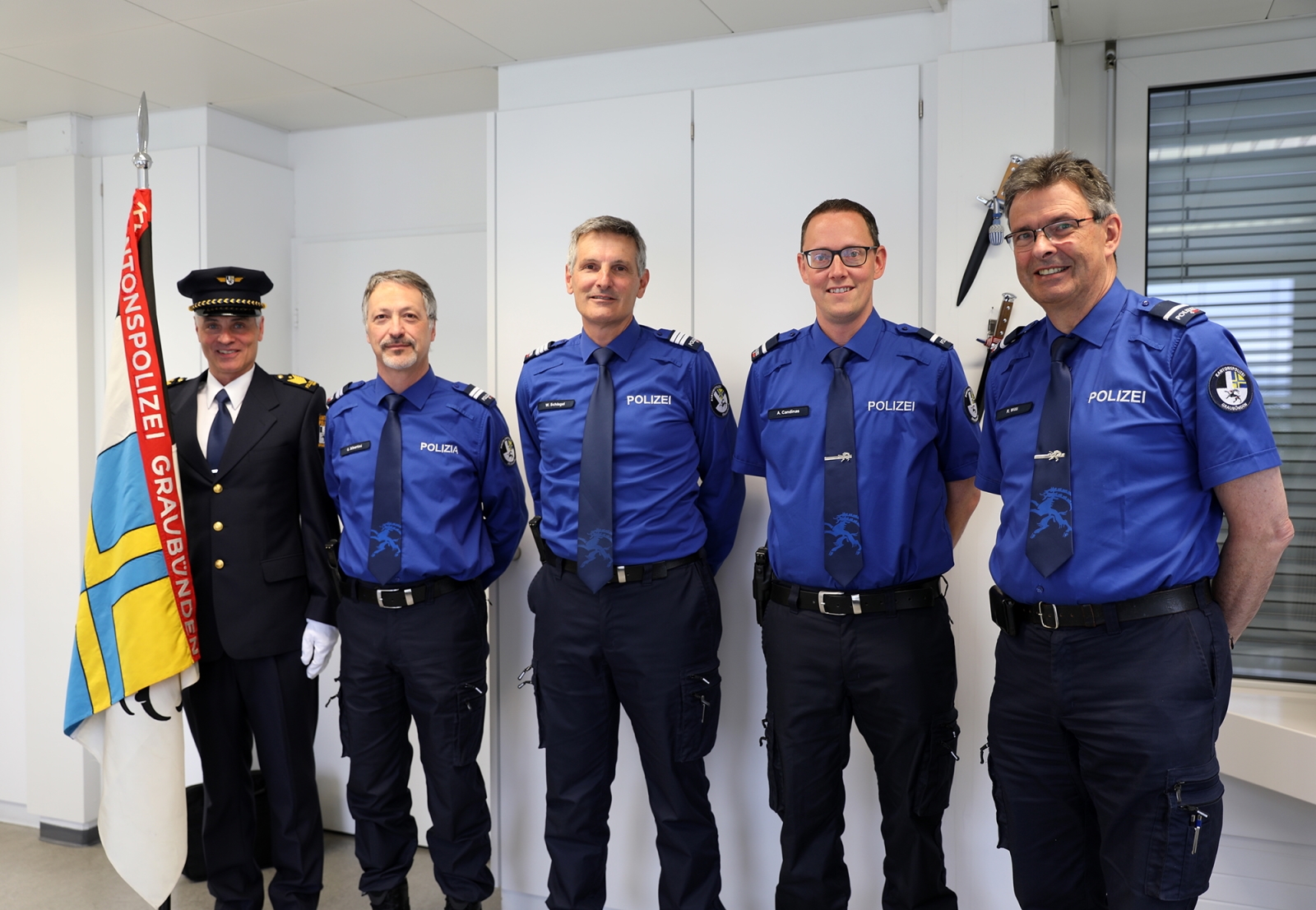 Aluis Candinas, Master of Law ed advocat, da 37 onns, mida da la Procura publica dal Grischun tar la Polizia chantunala dal Grischun. Il Grischun ha studegià giurisprudenza a l'Universitad da Lucerna ed ha lavurà tranter auter sco spezialist tar l'Uffizi per il register da commerzi e per ils notariats dal chantun Son Gagl. Sco procuratur public ha el manà durant ils ultims 6 onns numerusas proceduras en chaussas da la Polizia da traffic e da la Polizia criminala ed ha collavurà uschia stretgamain cun la Polizia chantunala dal Grischun. Ils 4 da matg ha el prestà sia empermischun, quai cun dar il maun a cumandant Walter Schlegel sur la bandiera dal corp, ed è vegnì acceptà en il corp da la Polizia chantunala dal Grischun en il grad d'in maior.