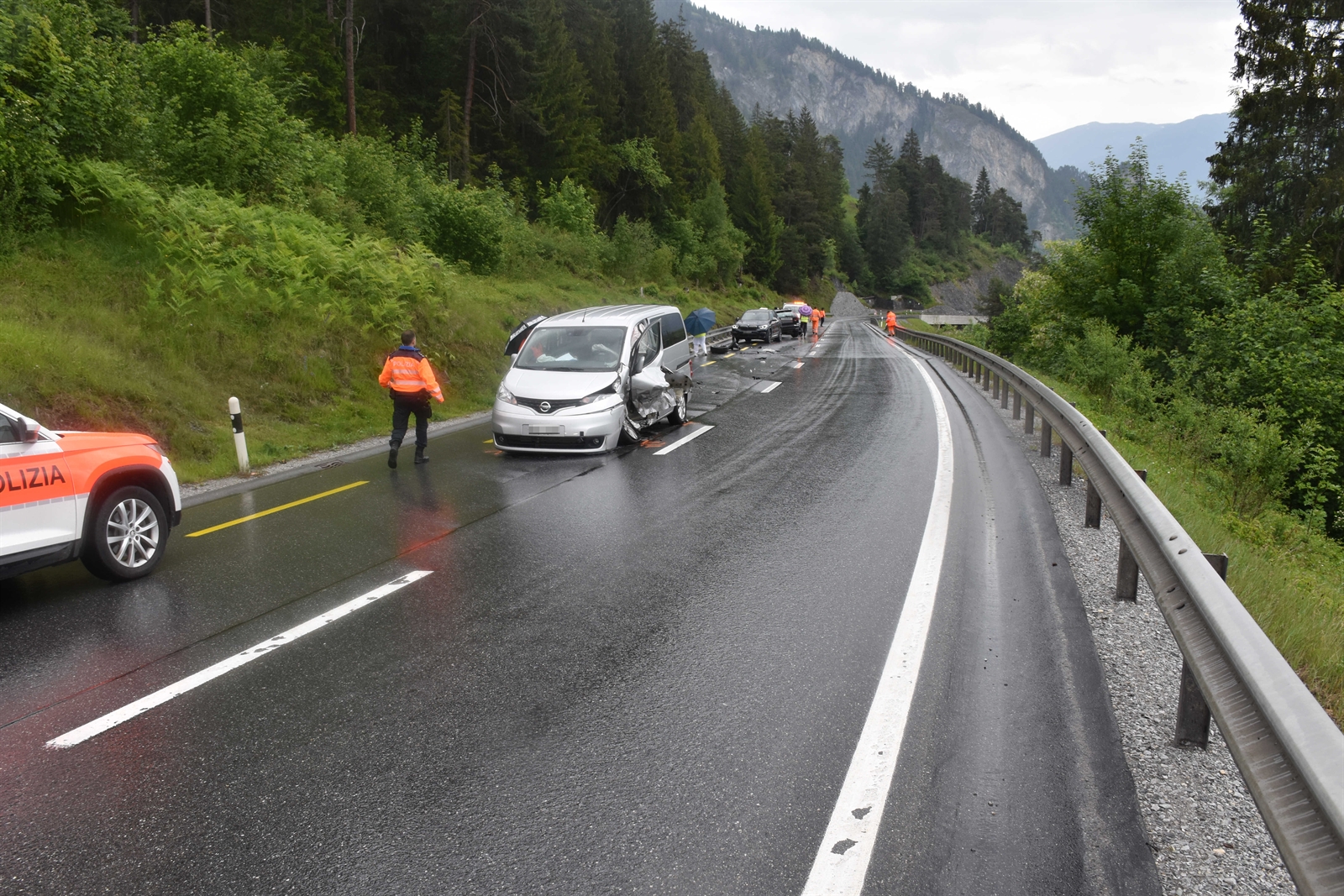 Auf der Hauptstrasse zwischen Flims und Trin ist es am Mittwochnachmittag zu einem Verkehrsunfall mit vier beteiligten Personenwagen gekommen. Zwei Personen mussten in Spitalpflege gebracht werden.