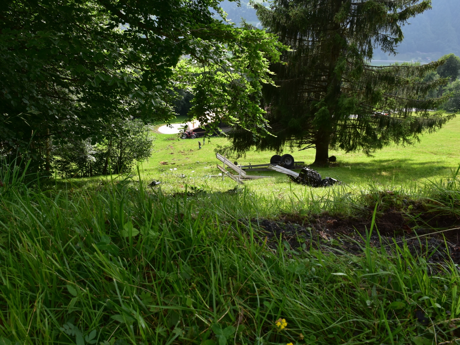 Am Mittwochabend ist in Buchen ein landwirtschaftliches Fahrzeuggespann von der Strasse abgekommen und hat sich einen Abhang hinunter überschlagen. Der Lenker des Traktors wurde verletzt.