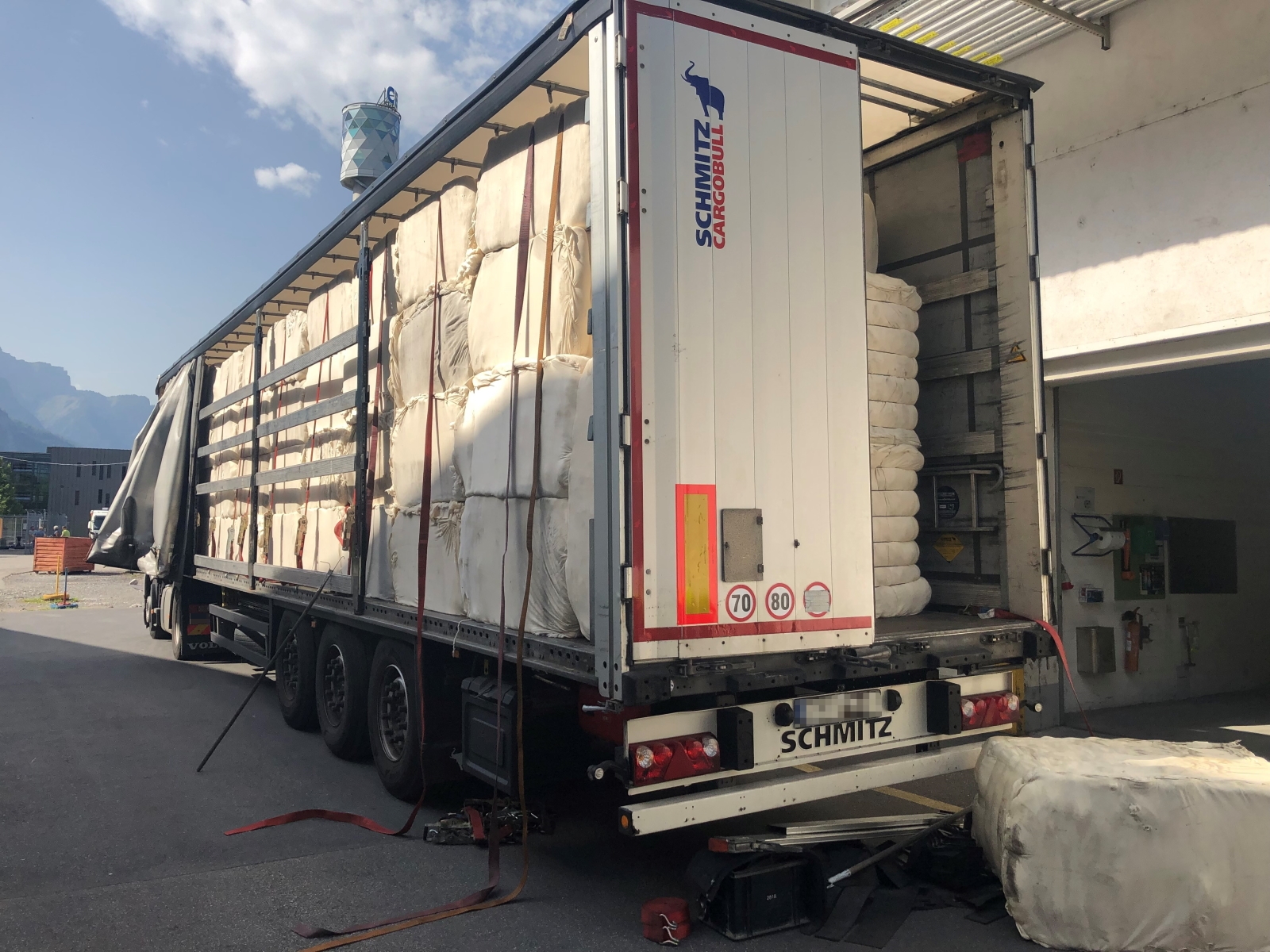 Am Montagvormittag ist in Landquart beim Entladen eines Sattelmotorfahrzeuges ein Chauffeur von der Ladung getroffen worden. Er verletzte sich mittelschwer.