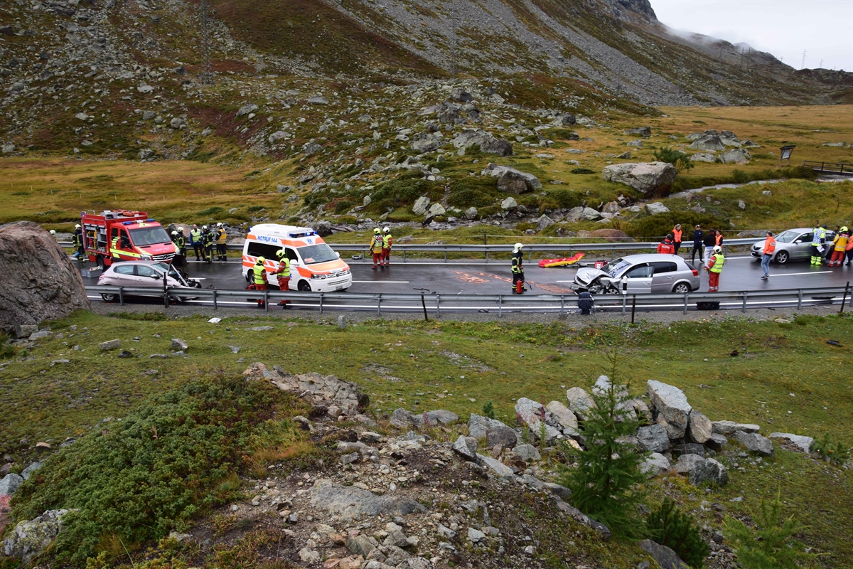 Am Samstagvormittag ereignete sich auf der Nationalstrasse N29 oberhalb von Silvaplana eine Frontalkollision zwischen zwei Personenwagen. Zwei Personen wurden mittelschwer, fünf Personen leicht verletzt.