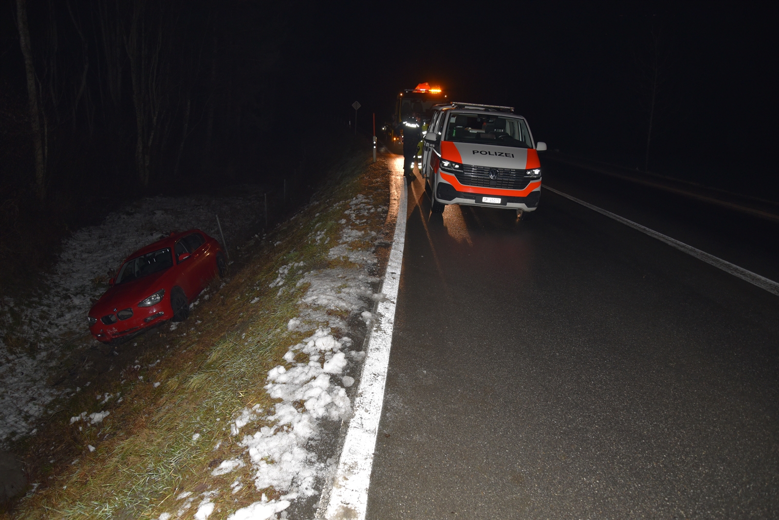 Der 23-Jährige fuhr um 01.15 Uhr über die Querverbindung von Thusis Nord in Richtung Scharans. Kurz vor der Abzweigung Fürstenau/Fürstenaubruck geriet sein Fahrzeug über den rechten Strassenrand und rutschte eine steile Böschung hinunter, wo es schliesslich vom Wildschutzstaun gestoppt wurde. Der Atemalkoholtest beim Lenker war positiv. Der beschädigte Personenwagen musste abgeschleppt werden.