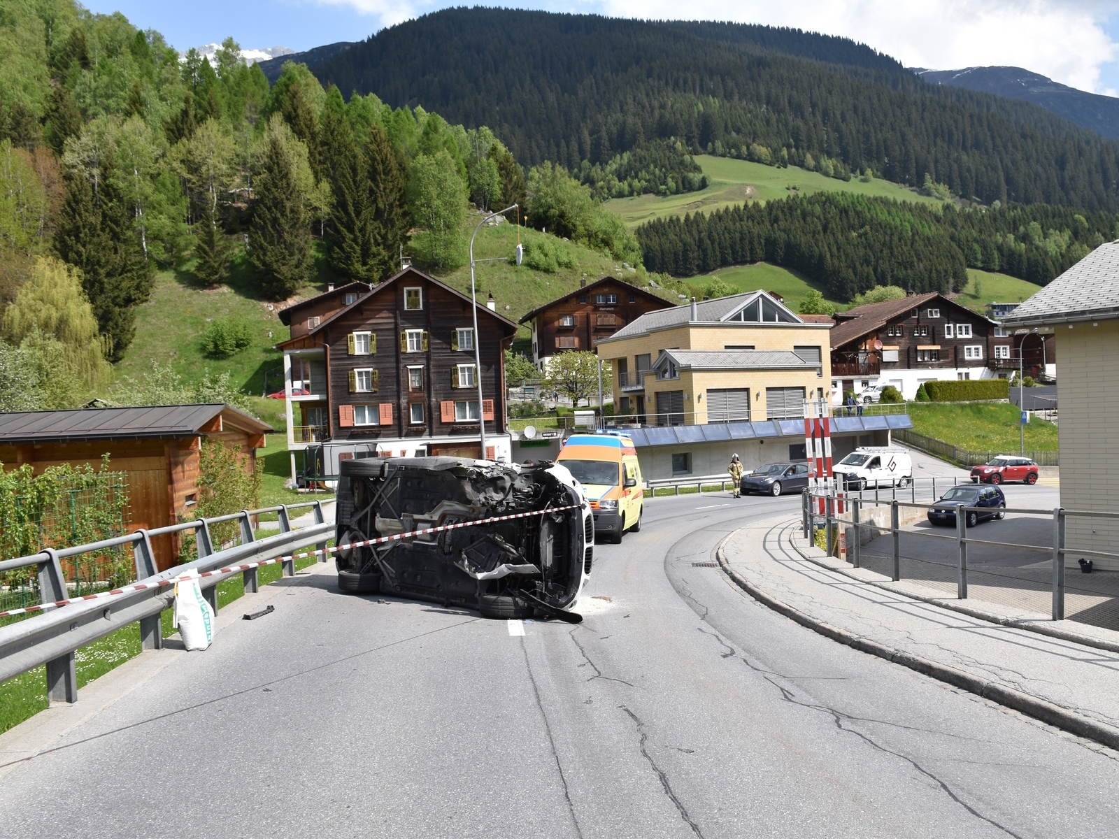 Am Dienstagvormittag ist auf der Oberalpstrasse ein Automobilist mit einer Leitplanke kollidiert. Das Auto kippte anschliessend auf die Seite.