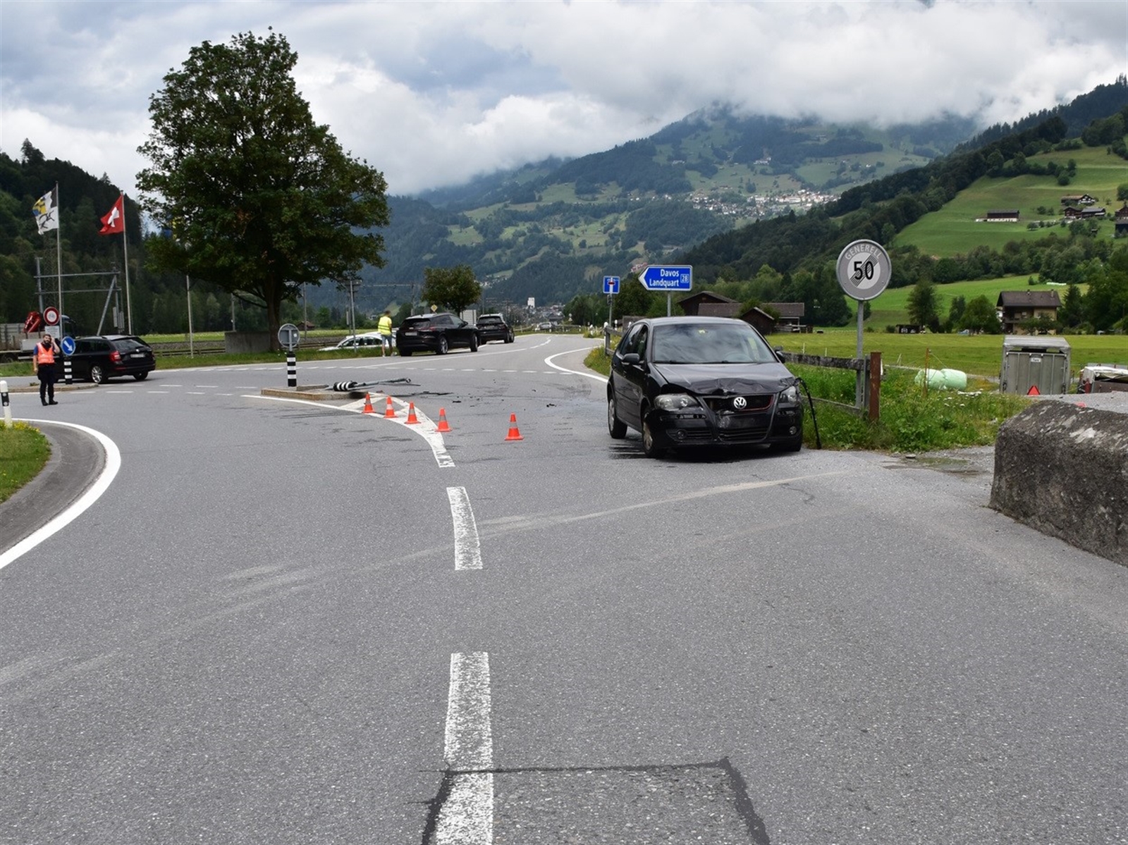 Der 58-jährige Deutsche bog am Donnerstag um 12.10 Uhr, von Landquart kommend, von der Nationalstrasse N28 in die Verzweigung Ascherapark ab. Dabei geriet sein Auto nach links, kollidierte mit einer Verkehrsinsel und einem Auto aus der Gegenrichtung, gelenkt von einem 32-jährigen Schweizer. Ein Team des Rettungsdienstes Schiers transportierte den Mann zu medizinischen Abklärungen ins Spital. Die Kantonspolizei Graubünden klärt den genauen Unfallhergang ab.