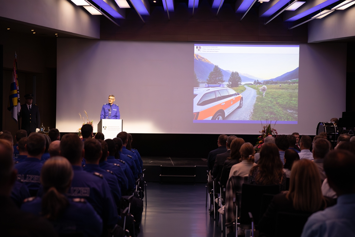 En ina ceremonia festiva – a la quala han participà giasts e commembras e commembers da la famiglia en relaziun cun la polizia – han 14 policistas e polizists gists examinads fatg l'empermischun d'uffizi ed èn entrads uffizialmain en il corp da la Polizia chantunala dal Grischun. Il cumandant Walter Schlegel ed il president da la regenza Peter Peyer han drizzà pleds commovents a las persunas gist saramentadas. La Musica da polizia dal Grischun ha accumpagnà musicalmain la festa.