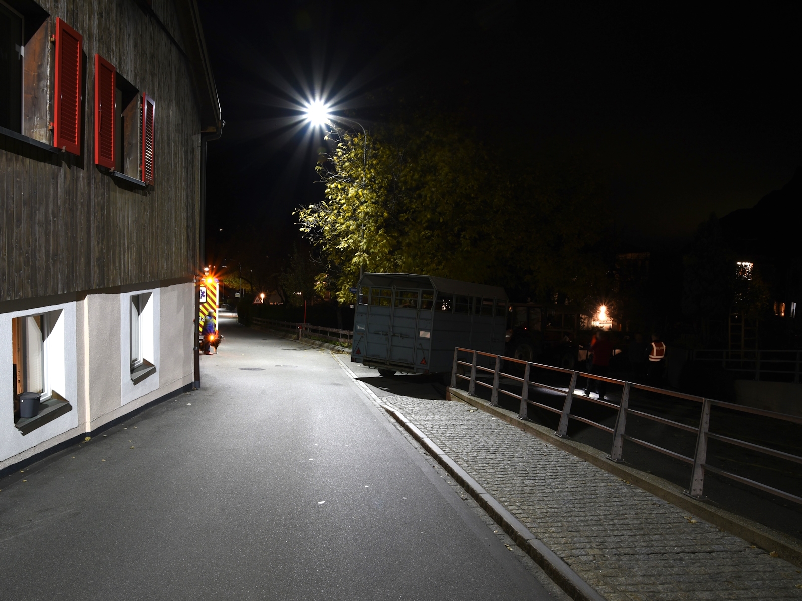 Ein 66-Jähriger fuhr mit einem Traktor und Tiertransportanhänger vor 17.30 Uhr die Hirschengasse hinunter. Er bog nach rechts in Richtung Winkel ab. Dabei erfasste das rechte Vorderrad des Traktors eine Fussgängerin, welche stürzte. Gemeinsam mit Drittpersonen leistete der Mann der Verletzten, sie hatte sich einen Unterschenkelbruch zugezogen, Erste Hilfe. Die weitere medizinische Versorgung sowie den Transport ins Kantonsspital Graubünden übernahm ein Team der Rettung Chur. Die Kantonspolizei Graubünden klärt den genauen Unfallhergang ab.