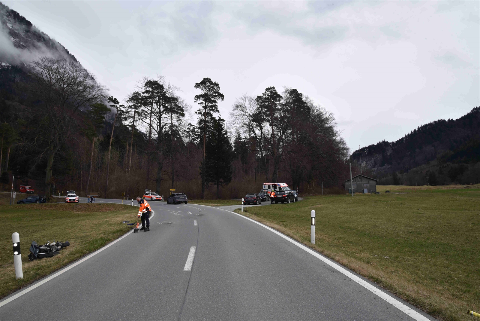 Ein 18-jähriger Motorradlenker fuhr kurz nach 14.00 Uhr auf der Luzisteigstrasse von St. Luzisteig talwärts in Richtung Balzers. In der langgezogenen Rechtskurve oberhalb der Örtlichkeit Answiesen kam er in Schräglage fahrend zu Fall. Das Motorrad rutschte auf die Gegenfahrbahn und kollidierte mit dem Fahrzeug einer entgegenkommenden 26-jährigen Personenwagenlenkerin. Der Töff wurde nach dem Aufprall zurück über die rechte Fahrbahn geschleudert und kam im rechtsseitigen Wiesland total beschädigt zum Stillstand. Der Motorradlenker rutschte über die Gegenfahrbahn am Fahrzeug vorbei und kam auf dem linksseitigen Wiesland zum Stillstand. Er wurde beim Sturz leicht verletzt, musste jedoch nach der Kontrolle des ausgerückten Ambulanzteams der Rettung Chur nicht hospitalisiert werden. Die Personenwagenlenkerin blieb unverletzt, am Fahrzeug entstand Sachschaden. Die Kantonspolizei Graubünden klärt die genaue Unfallursache.