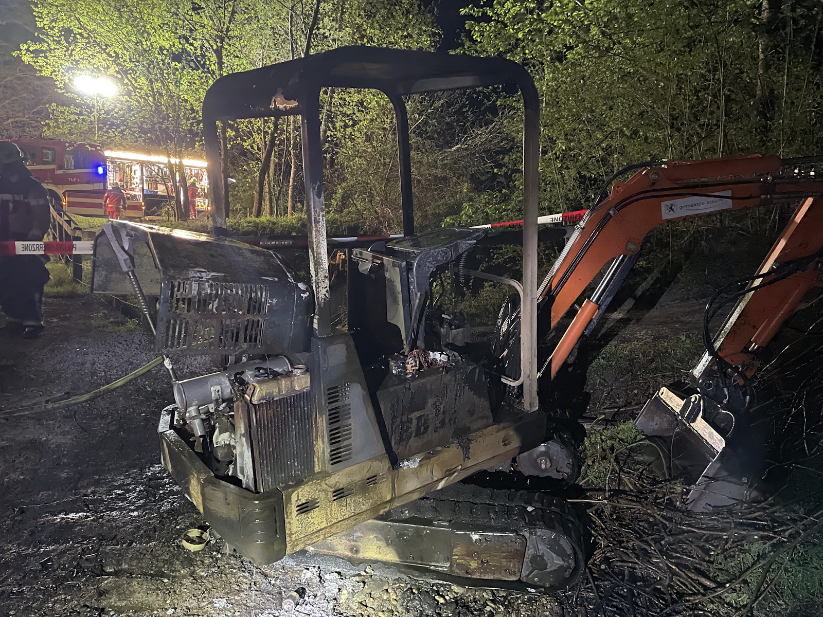 Am späteren Montagabend hat ein Brand einer Arbeitsmaschine einen Feuerwehreinsatz ausgelöst. Ein Kleinbagger stand in Vollbrand.