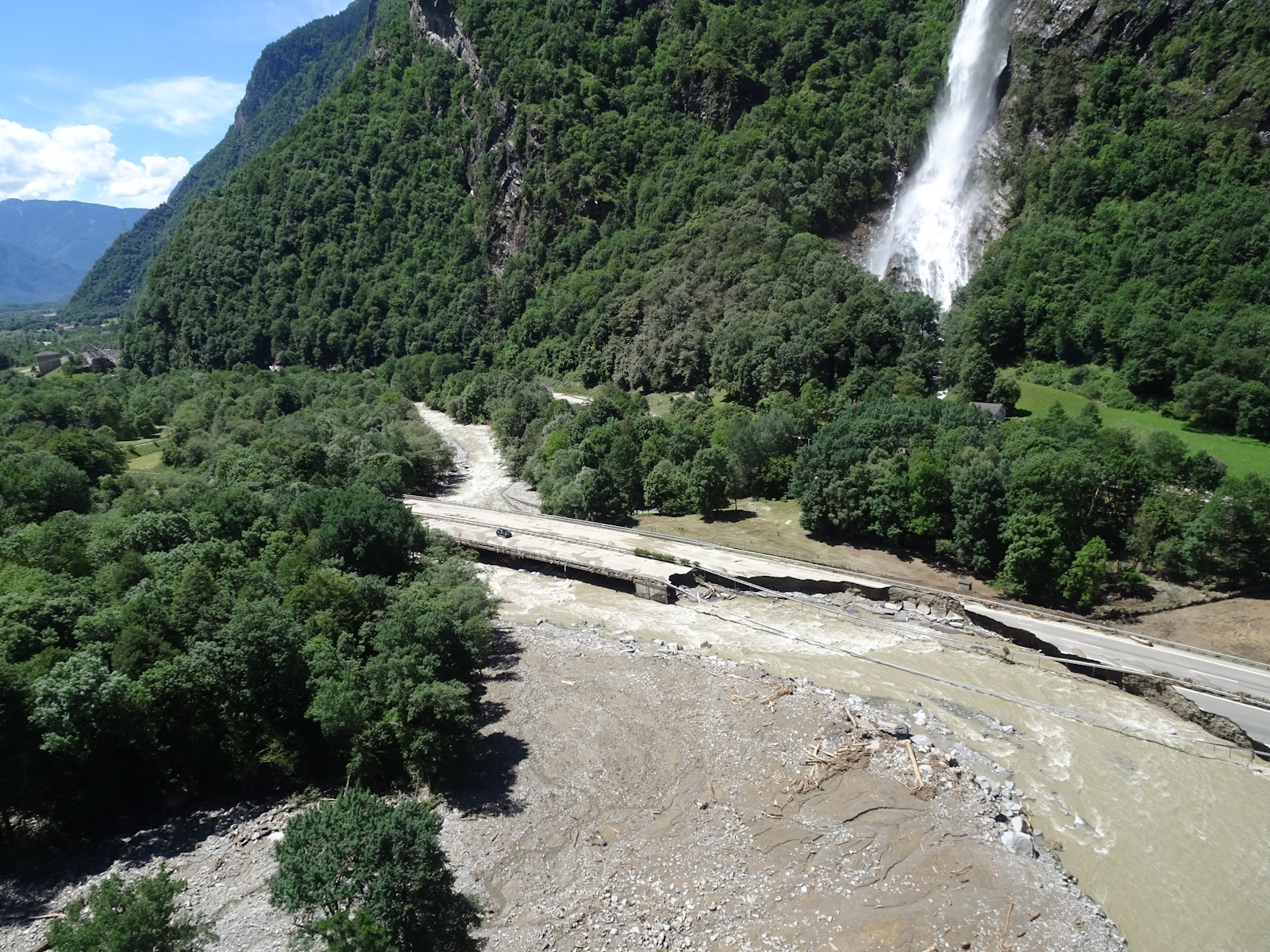 Am frühen Freitagabend ist es wegen massiven Gewittern und Niederschlägen zu einer Hochwasserlage infolge Felssturz gekommen. Flüsse sind dabei über die Ufer geraten, Strassen wurden überflutet zum Teil sehr stark beschädigt und mussten dadurch gesperrt werden. Drei Personen werden zurzeit immer noch vermisst. Mehrere Dutzend Einwohner mussten in der Region Mesolcina / Calanca aus ihren Häusern evakuiert werden, konnten jedoch grösstenteils am Samstagmorgen wieder zurück in ihre Heimat kehren.
