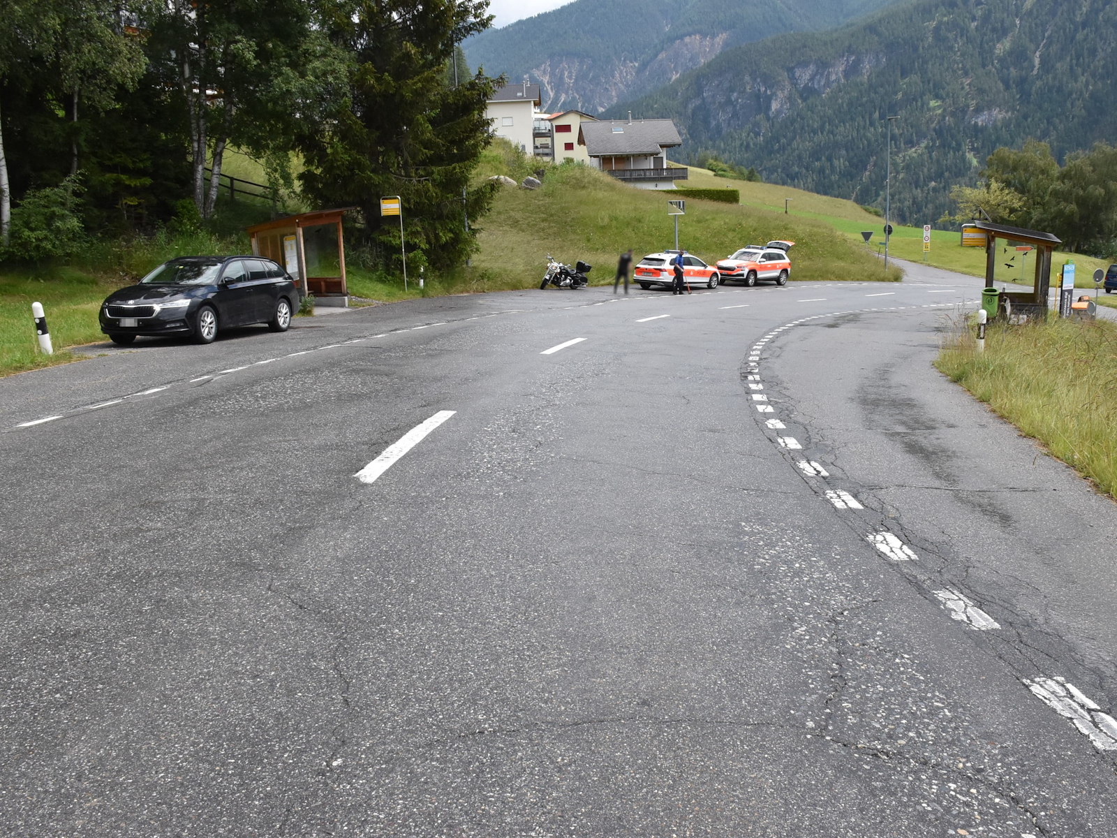 Der 58-Jährige war kurz nach 13 Uhr mit einer Motorradgruppe von Lenzerheide kommend über die Hauptstrasse H3 in Richtung Tiefencastel unterwegs. Auf dieser Talfahrt verlor er in einer Rechtskurve in Vazerol die Herrschaft über sein Gefährt. Er überquerte die Gegenfahrbahn auf die dortige Bushaltestelle in Richtung eines dort stehenden Lastwagens. Um eine Kollision mit diesem zu verhindern, legte er sein Motorrad auf die Seite. Dabei zog er sich Verletzungen am Oberkörper zu. Bis zum Eintreffen der Rettung Mittelbünden wurde er durch den Lastwagenchauffeur sowie seine zurückgekehrten Motorradkameraden betreut. Anschliessend überführte ihn der Rettungswagen ins Spital nach Thusis. Die Unfallursache wird durch die Kantonspolizei Graubünden abgeklärt.