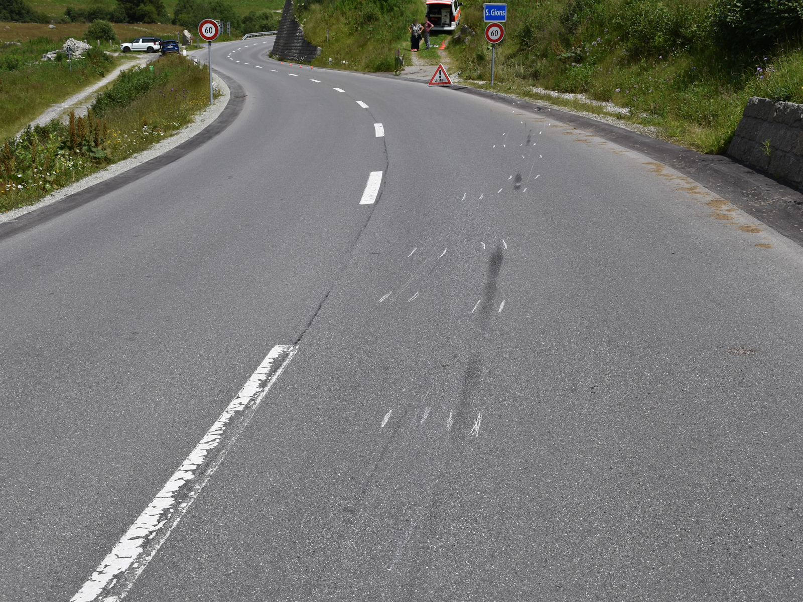 Ein 42-Jähriger fuhr kurz vor 10.45 Uhr von Disentis/Mustér kommend bergwärts über die Lukmanierstrasse in Richtung Hospiz. Kurz vor dem Weiler Sogn Gions überholte er ein Auto. Nach Abschluss dieses Überholmanövers fuhr er einem vor ihm fahrenden Auto auf, da dieses verkehrsbedingt wegen einem Fahrradfahrer die Geschwindigkeit reduzieren musste. Bei dieser Auffahrkollision stürzte der Motorradfahrer und verletzte sich mittelschwer.
