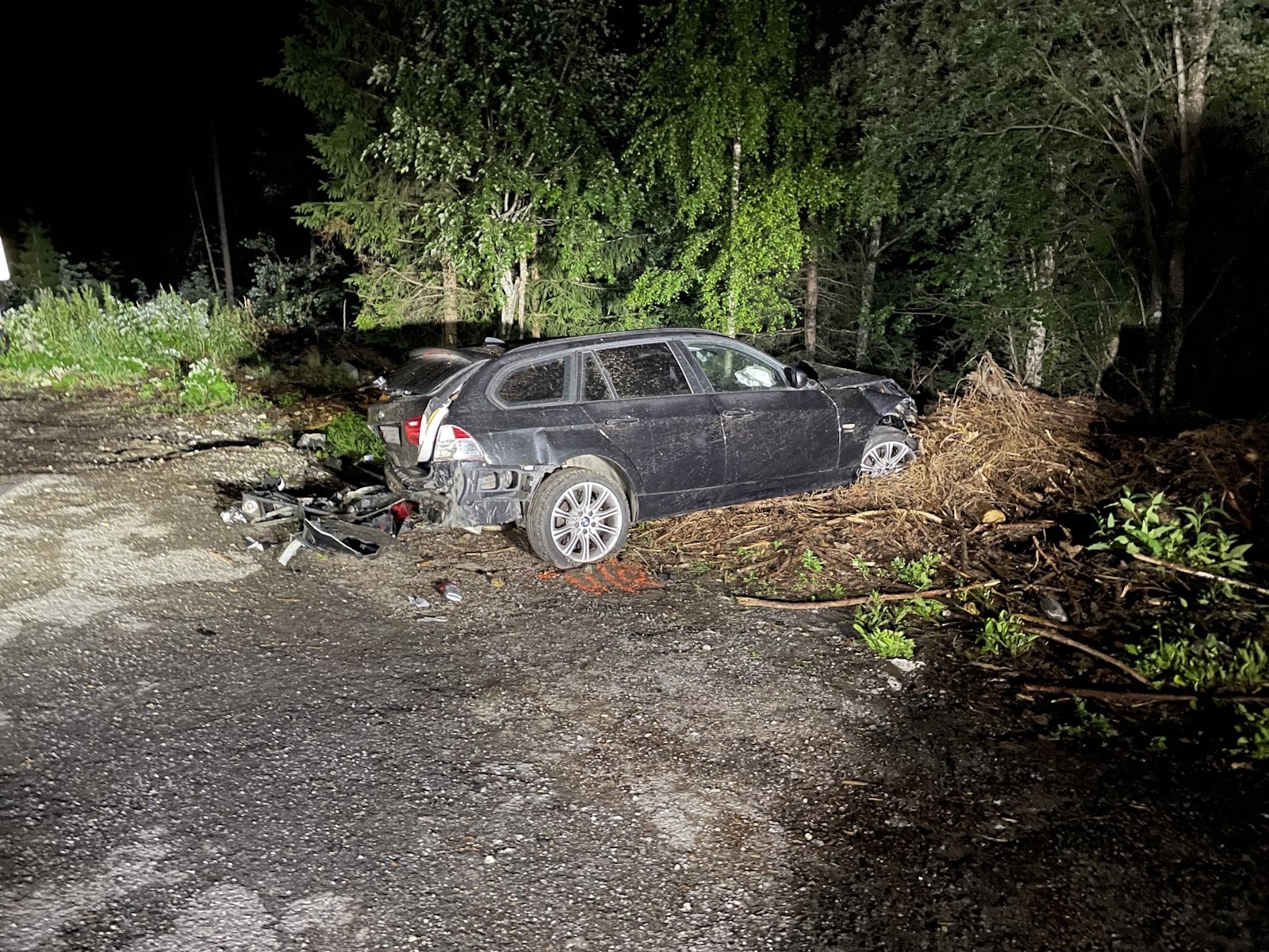 Der 25-jährige in der Schweiz wohnhafte Portugiese fuhr am Sonntag um 01.45 Uhr auf der Engadinerstrasse H27 von Scuol in Richtung Ardez. In einer Rechtskurve bei Plan d'En fuhr er mit seinem Personenwagen nach links und verliess die Strasse. Im angrenzenden Grünstreifen schlug das Fahrzeug auf einer Erhöhung auf und wurde über einen rund drei Meter breiten Bach katapultiert. Danach schlug es auf einem Kiesplatz auf und kam dort total beschädigt zum Stillstand. Die Kantonspolizei Graubünden führte mit dem Mann eine Atemluftprobe durch und aberkannte ihm aufgrund des Ergebnisses den ausländischen Führerausweis.
