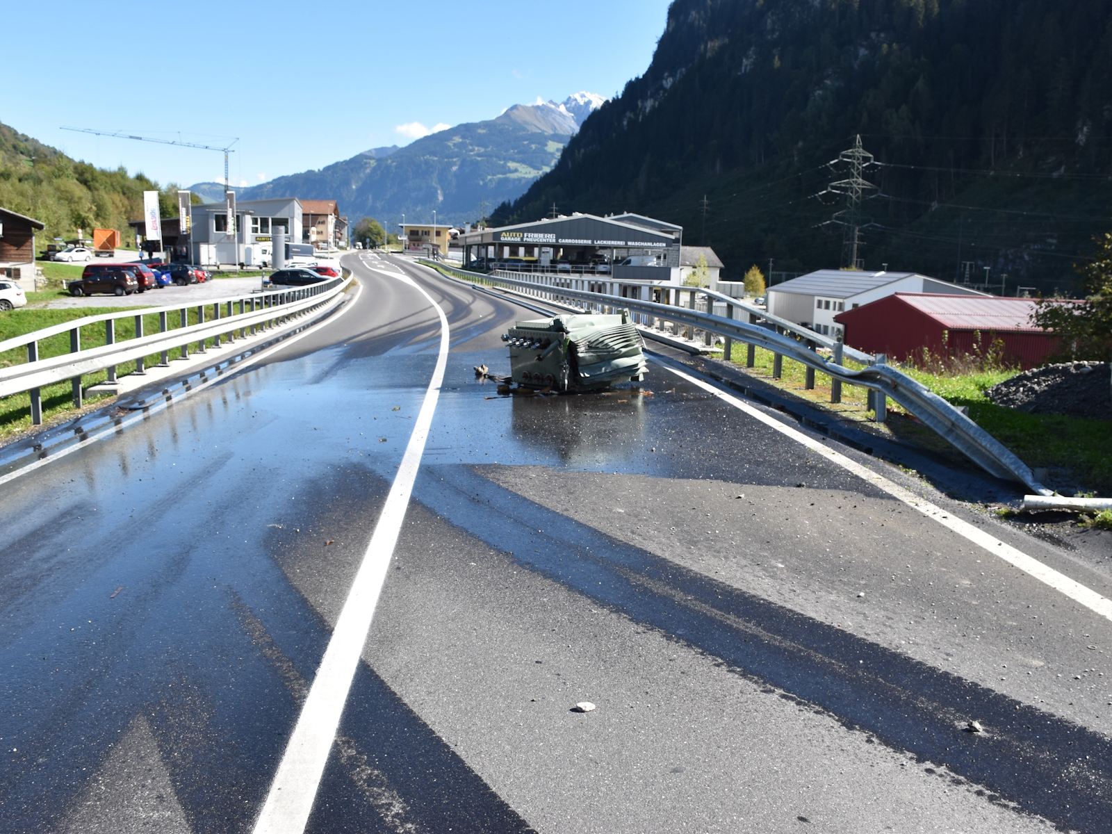 Am Montag ist auf der Fahrt über die Oberalpstrasse ein Transformator von einer Fahrzeugkombination gefallen. Dabei floss viel Öl aus.