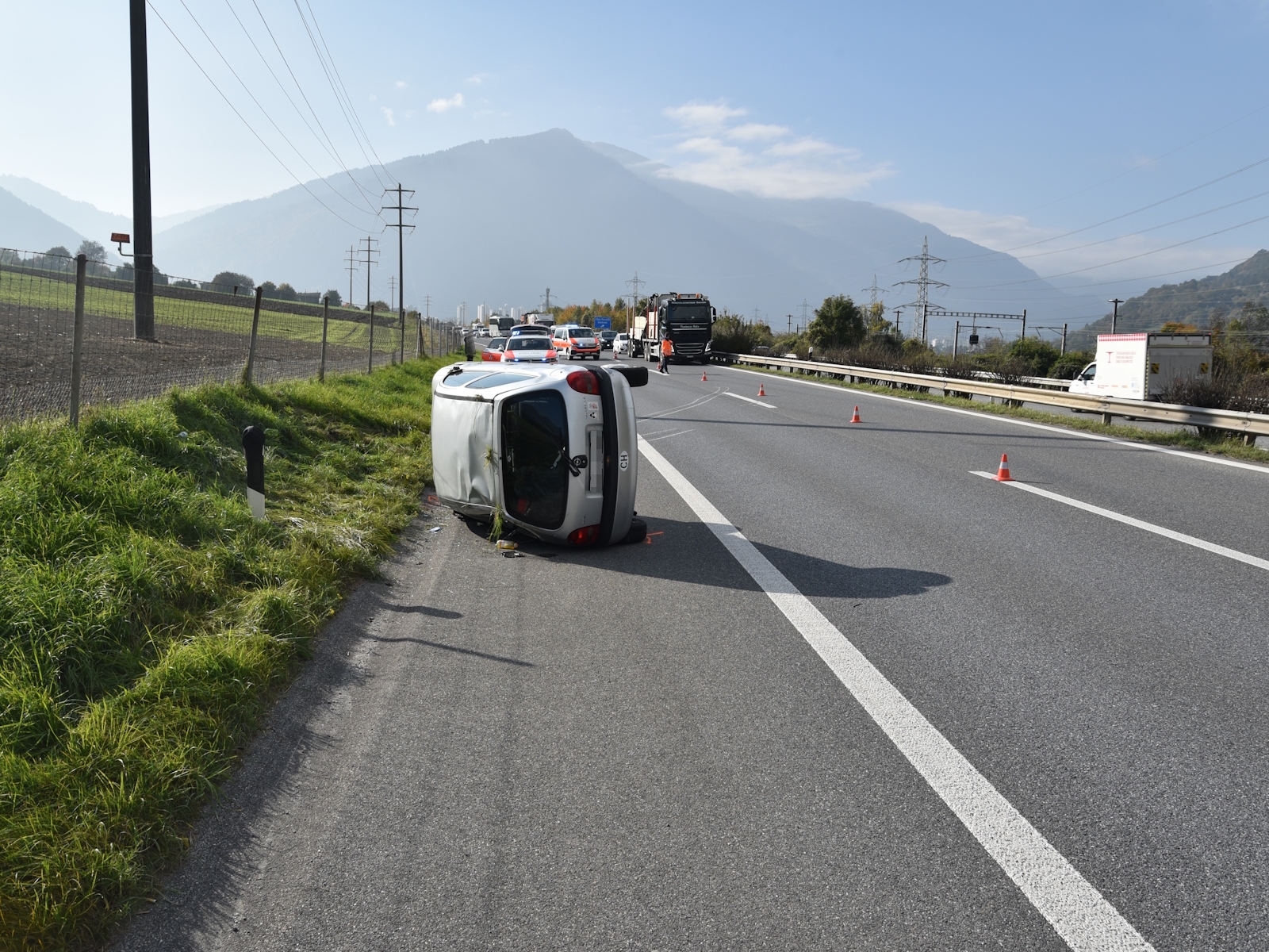 Auf der Autobahn A13 in Chur ist am Freitag ein Auto mit einer Böschung kollidiert und auf dem Dach zum Stillstand gekommen. Die Kantonspolizei Graubünden sucht Zeugen.