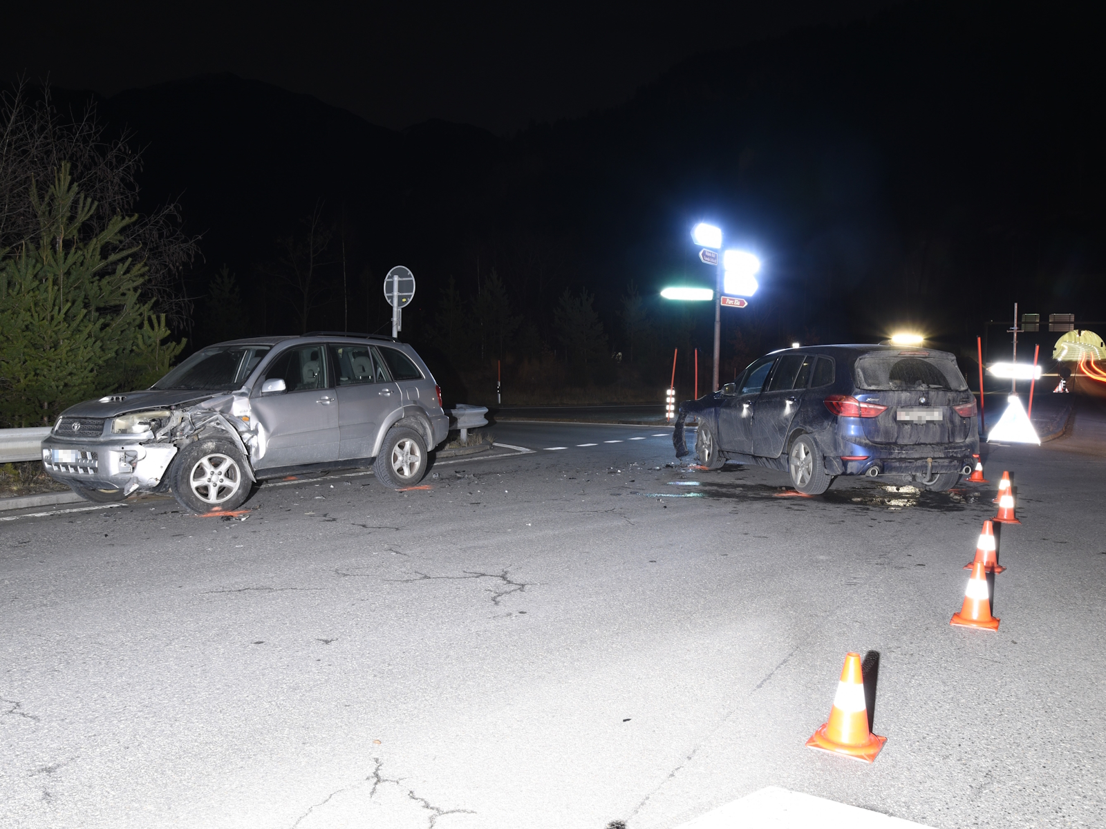 Eine 43-jährige Automobilistin fuhr gegen 21.15 Uhr von Thusis kommend auf der Querverbindung Thusis Süd und beabsichtigte links auf die A13 in Richtung Chur abzubiegen. Dabei kam es zur Kollision mit dem von Tiefencastel herannahenden Personenwagen eines 44-Jährigen. Der Mann wurde durch die Rettung Mittelbünden zur Kontrolle ins Spital nach Thusis gebracht, welches er noch am selben Abend verlassen konnte. An beiden Fahrzeugen entstand Totalschaden. Für die Fahrbahnreinigung standen Mitarbeitende des Tiefbauamtes Graubünden im Einsatz. Die Kantonspolizei Graubünden klärt die Unfallursache ab.