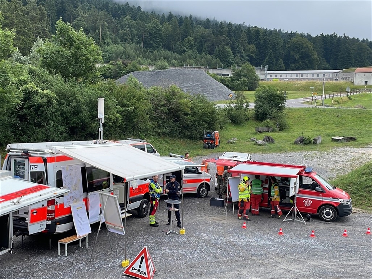 Das Szenario konnte unter Mitwirkung von Rettungsorganisationen, Feuerwehren und Helikopter-Crews bewältigt werden. Rund 90 Gäste aus dem In- und Ausland verfolgten die Übung interessiert vor Ort.
