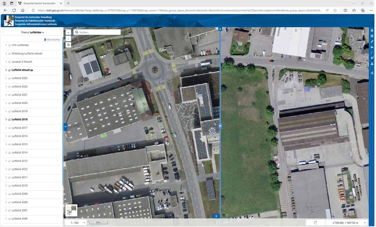 Ein weiteres Highlight der neuen Version ist die Vergleichsfunktion für verschiedene Zeitstände, z. B. für Luftbilder. Damit lassen sich Veränderungen über die Jahre direkt im Viewer sichtbar machen.