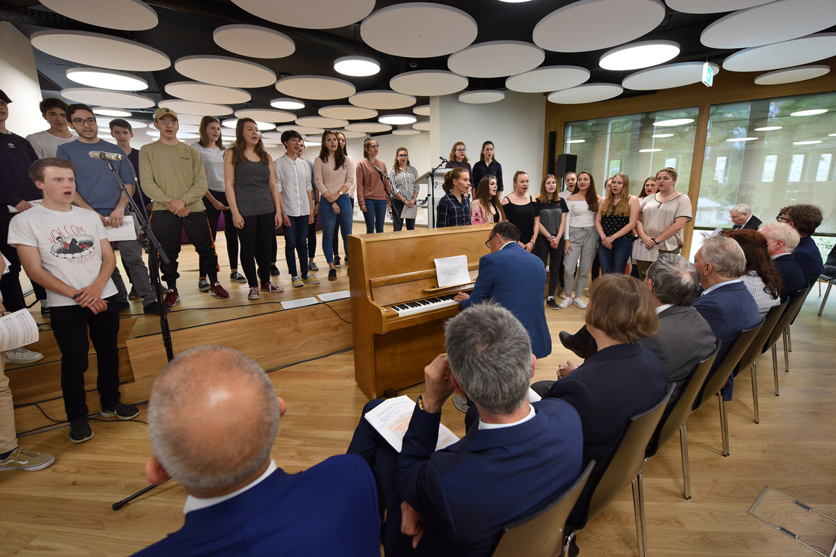Am Freitag, 4. Mai 2018 wurden die neuen Mensa und Mediothek sowie die Kulturgüterschutzräume mit einem Festakt mit geladenen Gästen feierlich eingeweiht. Am Samstag, 5. Mai 2018 hatte die Bevölkerung anlässlich eines Tages der offenen Türe Gelegenheit, unsere neuen Räumlichkeiten zu besichtigen. Das helle, einladende Gebäude als Herzstück des Campus und die offene Gestaltung der Räume überzeugen nicht nur unsere Schülerinnen und Schüler, sondern fanden auch bei den Besucherinnen und Besuchern grossen Anklang. Umrahmt wurden die Feierlichkeiten mit Auftritten und Darbietungen von Schülerinnen und Schülern sowie Lehrpersonen.