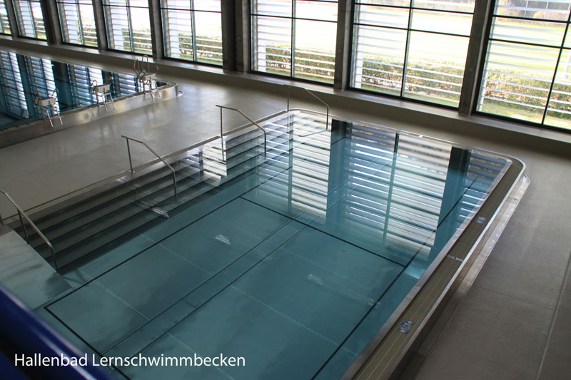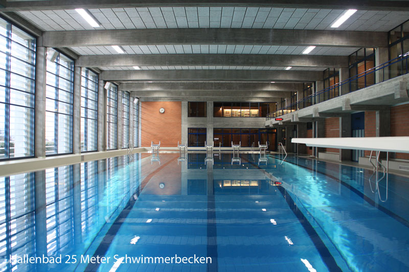 - Hallenbad mit Schwimmerbecken (25 x 11 m, 5 Bahnen) und separatem Lehrschwimmbecken