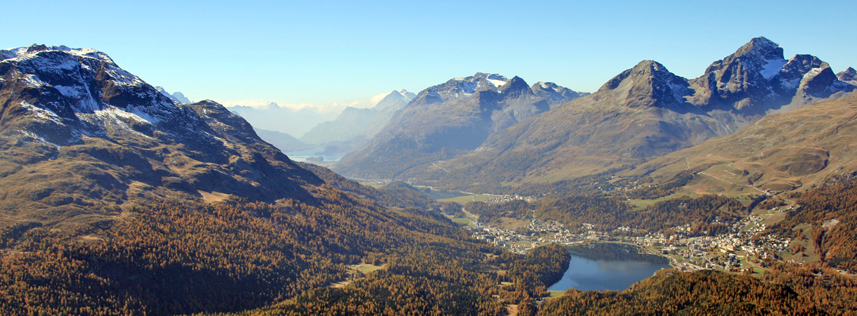 Blick von Muottas Muragl auf die Engadiner Seenlandschaft. Bild: Bundesamt für Umwelt (BAFU)