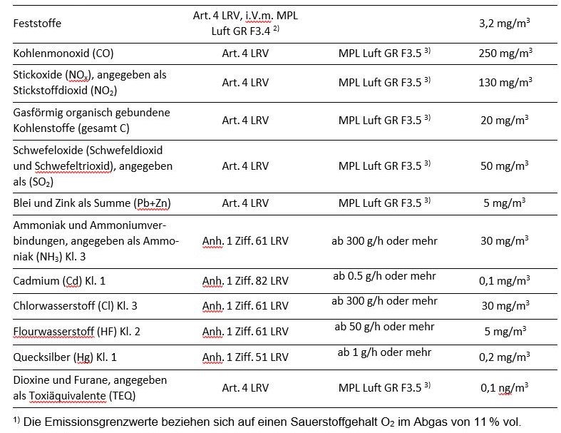 Neue Holzfeuerungsanlagen ab 70 kW müssen mit ausreichend Wärmespeichervolumen und in der Regel mit wirksamen Feinstaubabscheidern ausgerüstet werden. Das Amt für Natur und Umwelt (ANU) ist danach bestrebt, dass der Anlagepark im Kanton Graubünden ab 2028 aus emissionsarmen und effizienten Wärmeerzeugern besteht. (Lufthygienische Anforderungen an die messpflichtigen Holzfeuerungsanlagen über 70 kW. Stand-der-Technik-Papier 2018.).