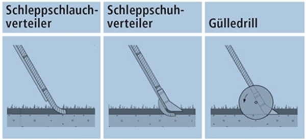 - die bandförmige Ausbringung mit Schleppschlauch-Verteilern;