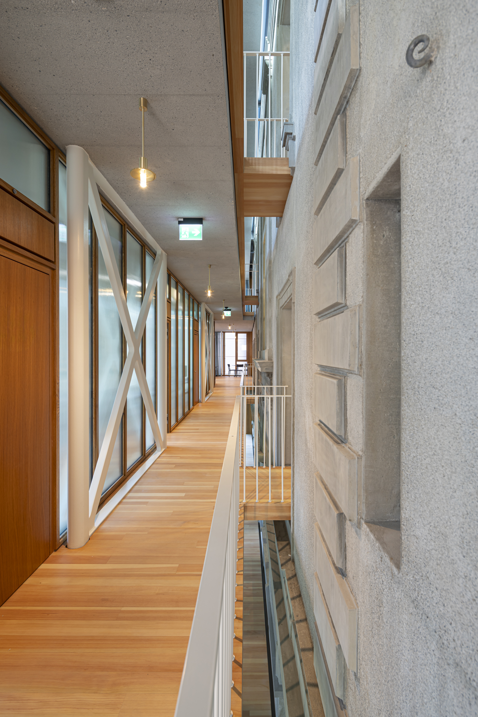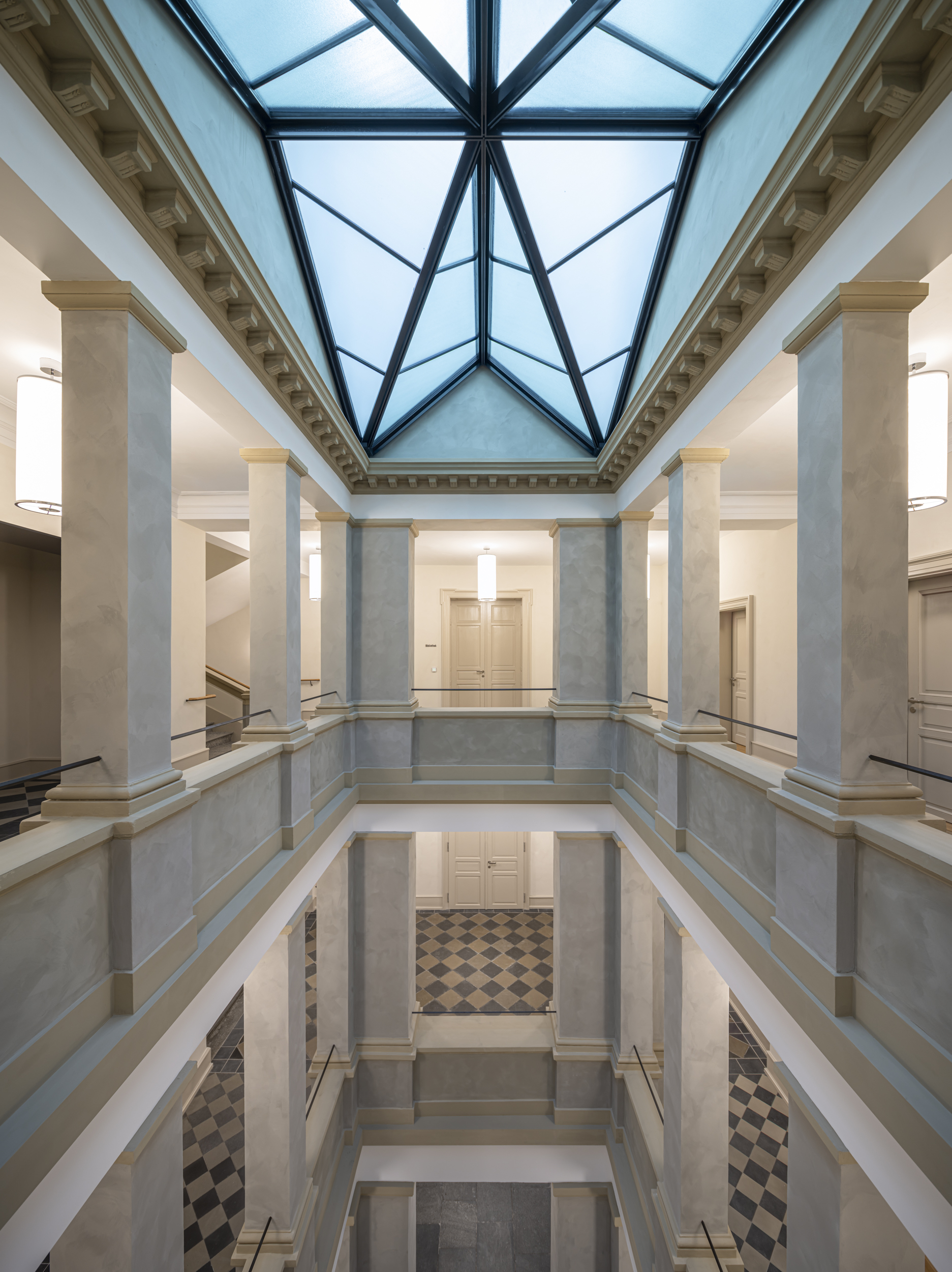 Con la trasformazione è stata sostanzialmente ripristinata la suddivisione originaria degli spazi dell'edificio. Nel nuovo Tribunale d'appello e nel suo edificio annesso troveranno spazio le sale per le parti, le aule del tribunale e le sale riunioni, la biblioteca, gli uffici individuali e quelli condivisi, i locali accessori nonché la cancelleria con ricezione e foyer d'ingresso nonché la caffetteria interna. Va posto in particolare risalto il ripristino del vecchio cortile a lucernario e della ex sala del Gran Consiglio a due piani, dove oggi si trova la grande sala d'udienza. Essa si presenta nuovamente con le vetrate artistiche colorate originarie e con i lampadari storici. Un parco di nuova realizzazione tra Villa Brügger, il padiglione in giardino e lo Staatsgebäude funge da elemento di collegamento dell'impianto.