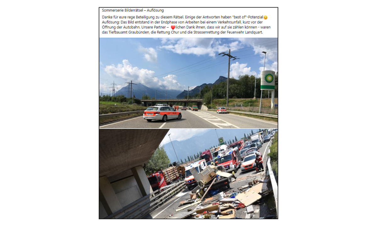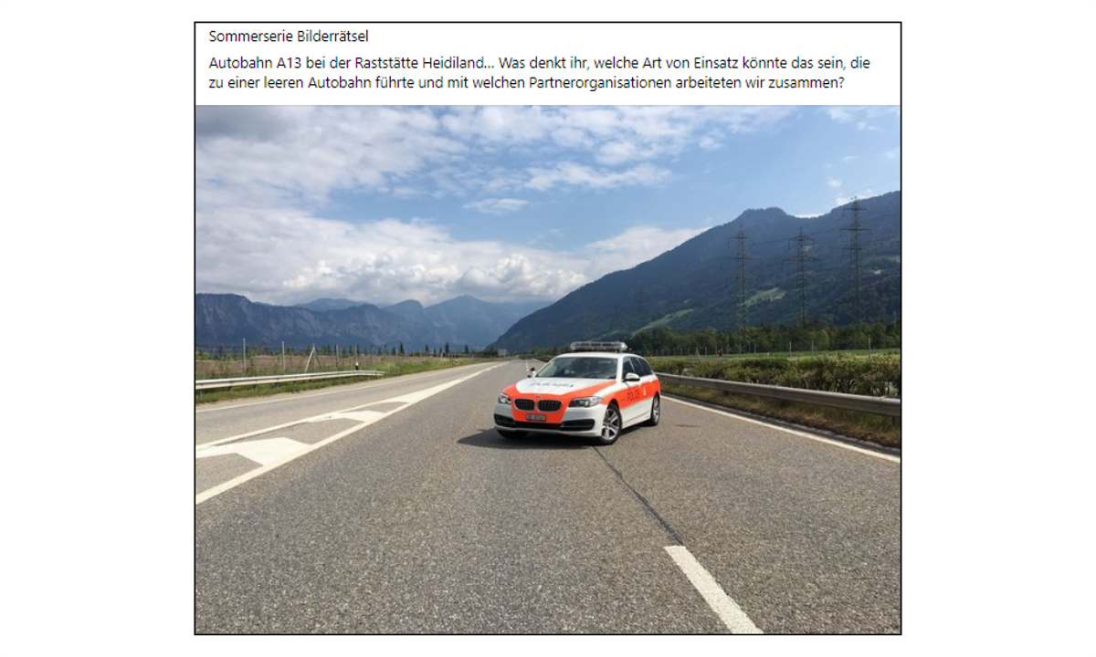 La serie di indovinelli ha avuto inizio l'11 luglio con l'immagine di un'autopattuglia sull'autostrada altrimenti deserta. Oltre 280'000 persone hanno visualizzato il post.