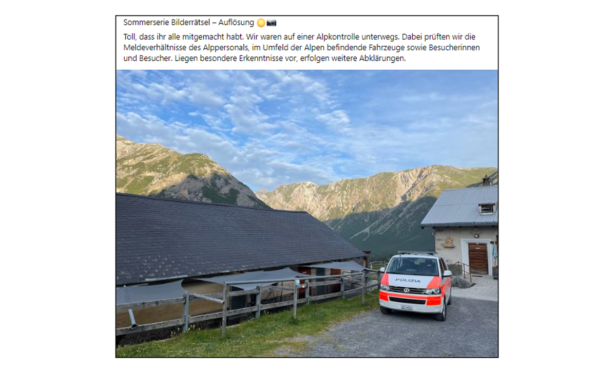 Durante i mesi estivi la Polizia cantonale dei Grigioni ha pubblicato una serie di indovinelli sul proprio profilo Facebook. Alcune delle risposte della community erano alquanto creative.