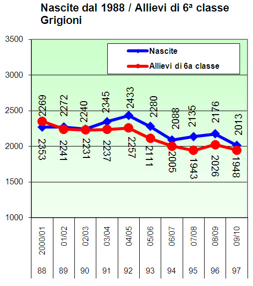 Negli ultimi anni nei Grigioni si registra anche un saldo migratorio negativo per i bambini fino alla sesta classe. In altre parole sono più numerosi i bambini che frequentano una classe non superiore alla sesta che lasciano il Cantone insieme ai loro genitori, rispetto ai loro coetanei che vi giungono.