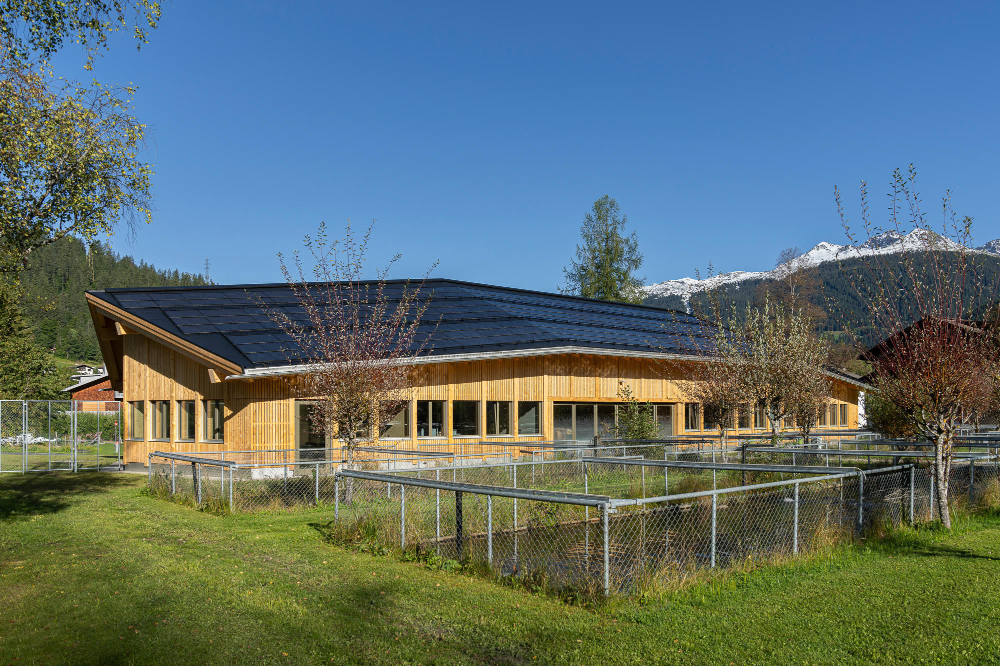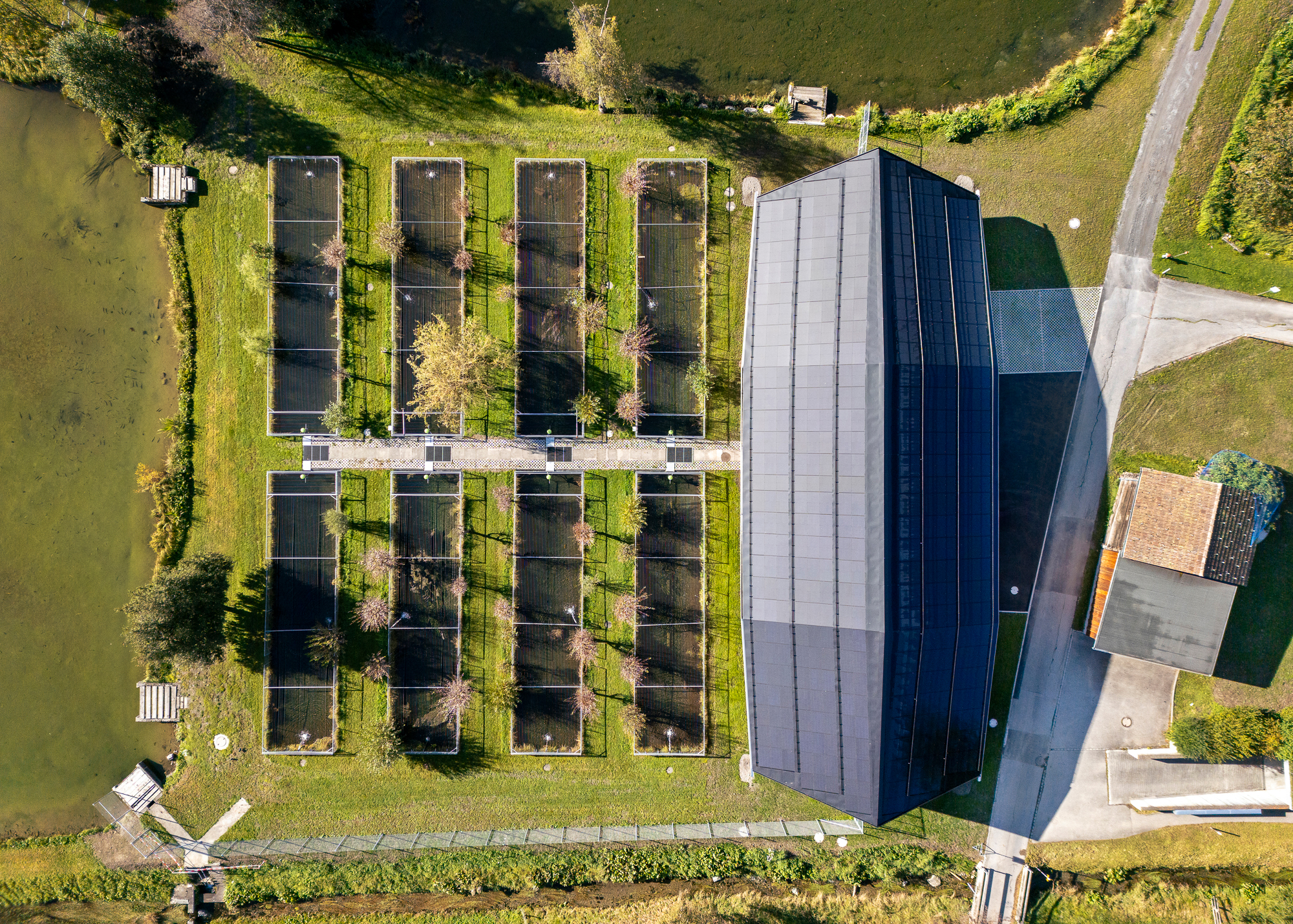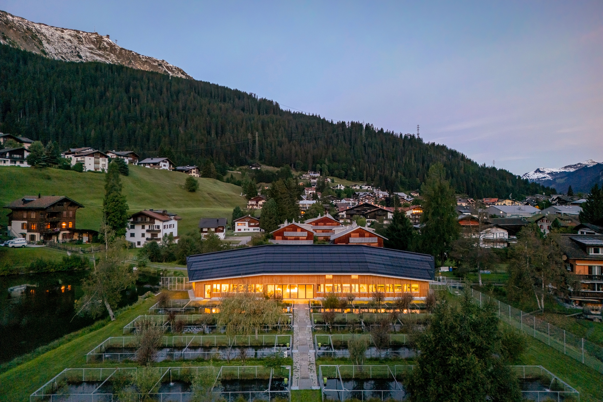 Die Fischzuchtanlage in Klosters deckt die Region Prättigau sowie das Landwasser- und Albulatal ab. Mit dem modernen Ersatzneubau schafft der Kanton die räumlichen und die betrieblichen Voraussetzungen für die Weiterführung der Anlage. Das nachhaltige und funktionale Gebäude kombiniert moderne Elemente mit der ortstypischen Bauweise. Durch die Konzentration der wichtigen Abläufe im Erdgeschoss ist ein effizienter Betrieb gewährleistet. Die Photovoltaikanlage auf dem Dach trägt zur Stromversorgung der gesamten Fischzuchtanlage bei.