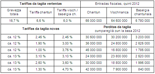En in artitgel da la «Südostschweiz» dals 18 da matg 2013 vegn Barbara Janom Steiner, sco cussegliera guvernativa cumpetenta, a la conclusiun che las perditas da taglia fissan supportablas per il Grischun. Ella quintia cun perditas da taglia da 15 fin 28 milliuns francs per il chantun. Cunquai che las perditas da taglia vegnissan per part cumpensadas (participaziun pli gronda dals chantuns vi da las taglias federalas) e damai che la gulivaziun da finanzas federala na vegniss betg midada en quest reguard, vegn la refurma giuditgada sco realisabla. Dacurt – a chaschun da la radunanza da delegadas e delegads – ha l'uniun grischuna d'artisanadi e mastergn correspundentamain formulà la finamira da reducir ussa l'imposiziun da taglia sin interpresas.