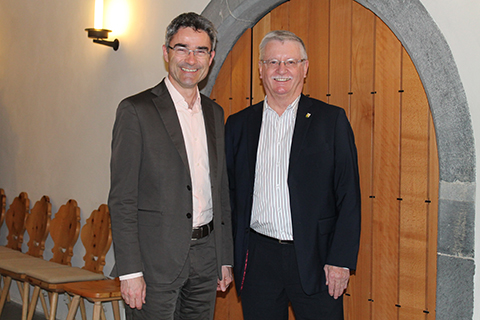 Il president da la regenza Mario Cavigelli retschaiva en la chasa grischa a Cuira il president da la regenza da Turgovia Bernhard Koch (a dretga).