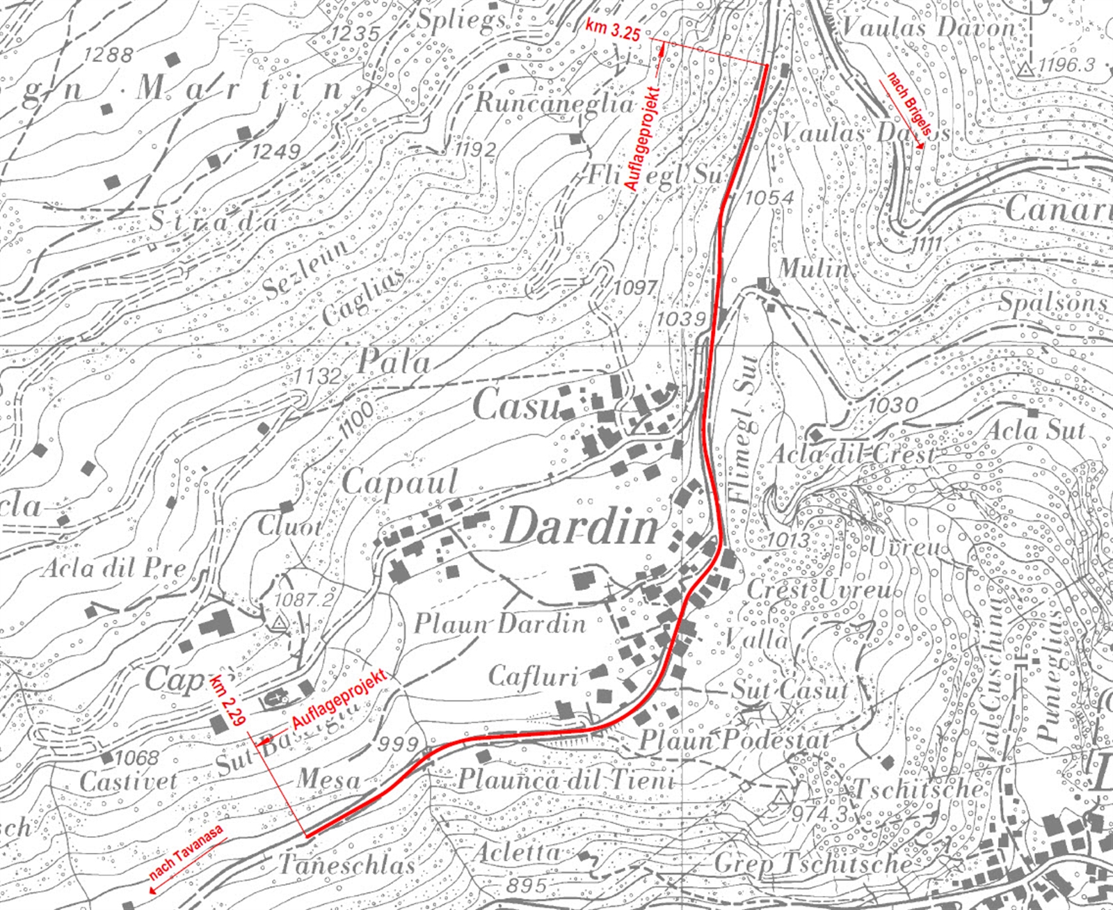 La via da Breil fa part da la rait chantunala da vias da colliaziun. Ella collia ils abitadis da la vischnanca da Breil ed è l'access principal a la regiun da vacanzas Breil – Vuorz – Andiast. La via da Breil è per part fitg stretga e nunsurvesaivla. Ultra da quai ha la via donns perquai che sia surstructura n'è betg resistenta a la schelira. La correcziun da la via vegn realisada tranter Danis e Breil e tanghescha il traject entaifer il vitg da Dardin. Il project cumpiglia la renovaziun, il schlargiament ed il rinforzament da la via sco er l'augment da la segirezza dal traffic.