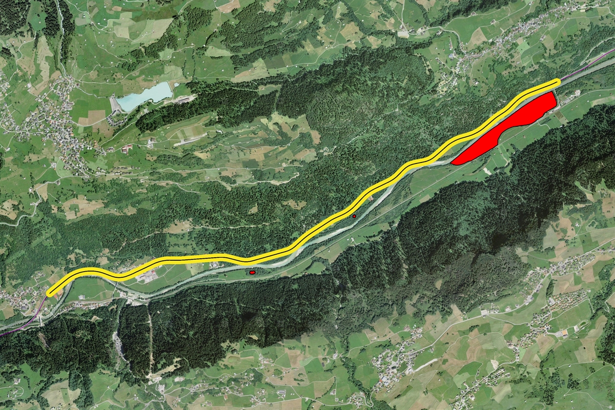 Il traject dal project (mellen) cunfinescha cun ina plazza da fregar per amfibis d'impurtanza naziunala (cotschen)